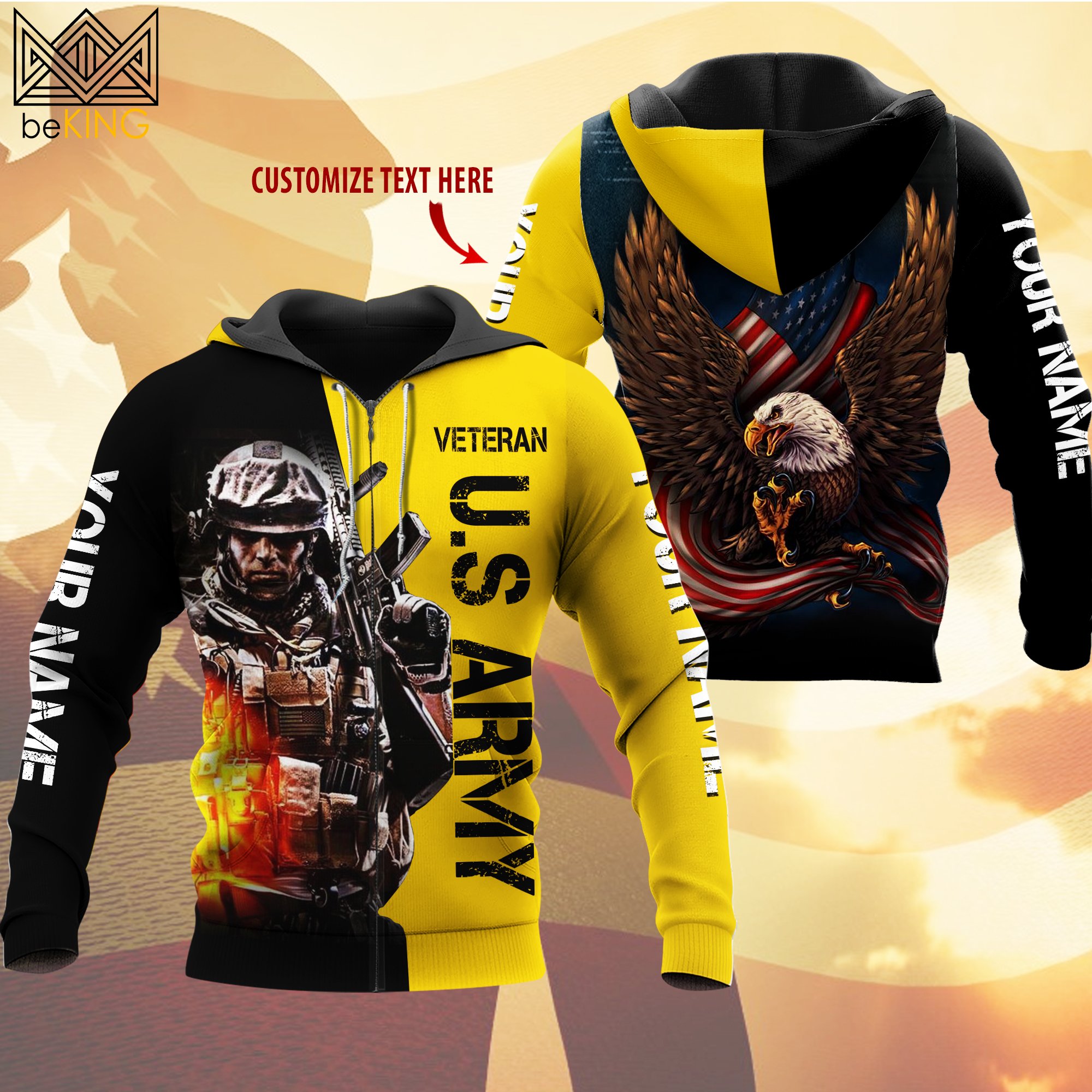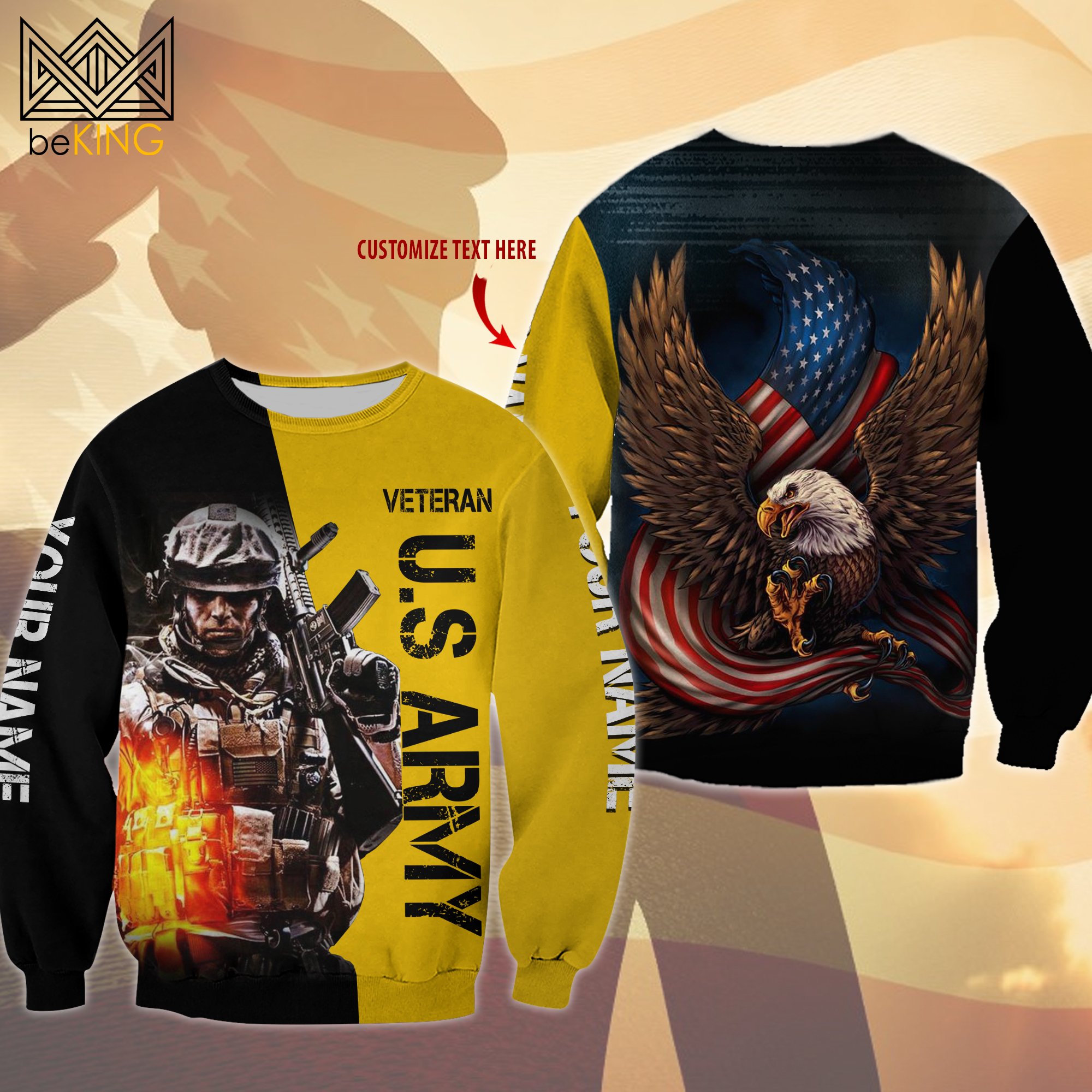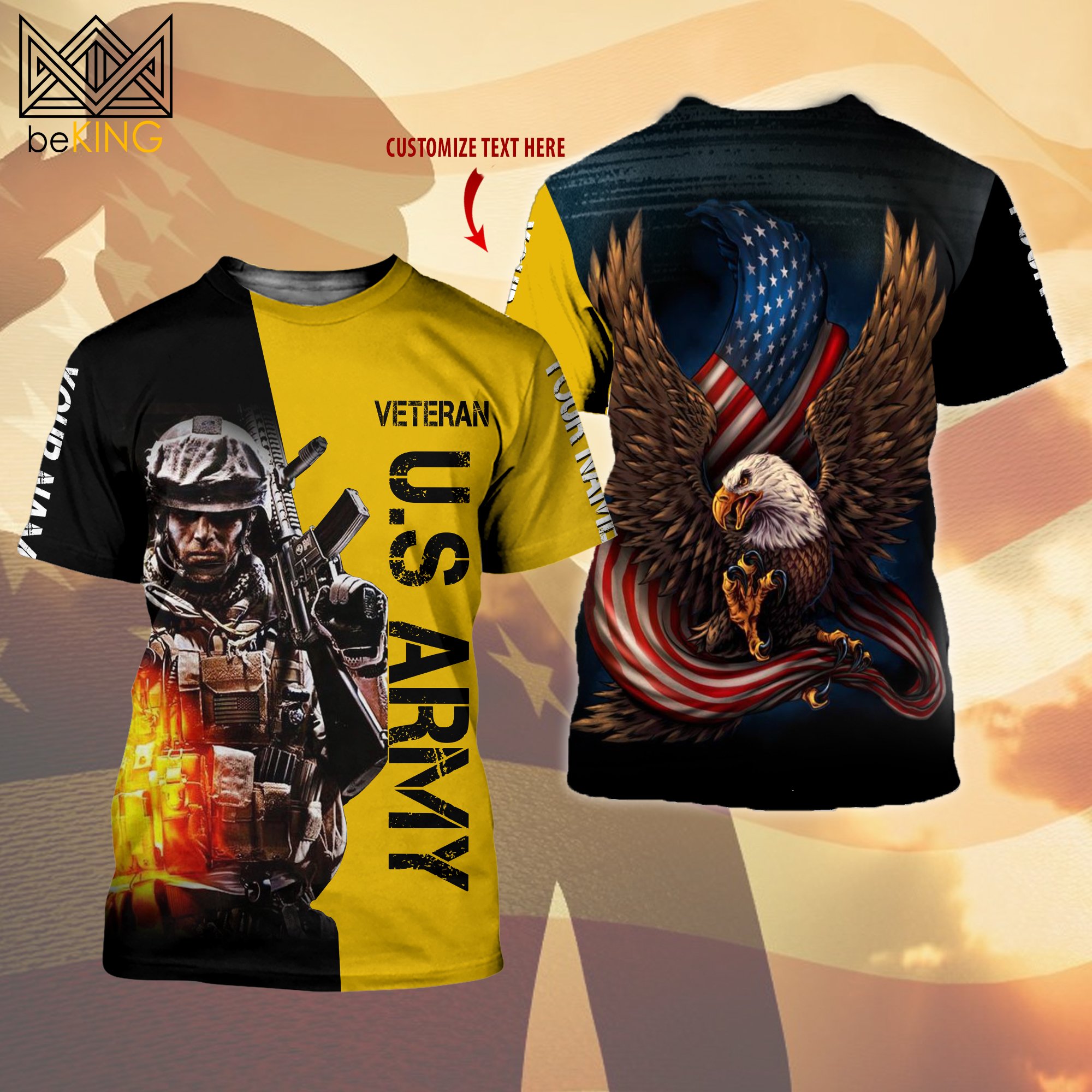BeKingArt 3D Veteran Personalized US Army Home Of The Free