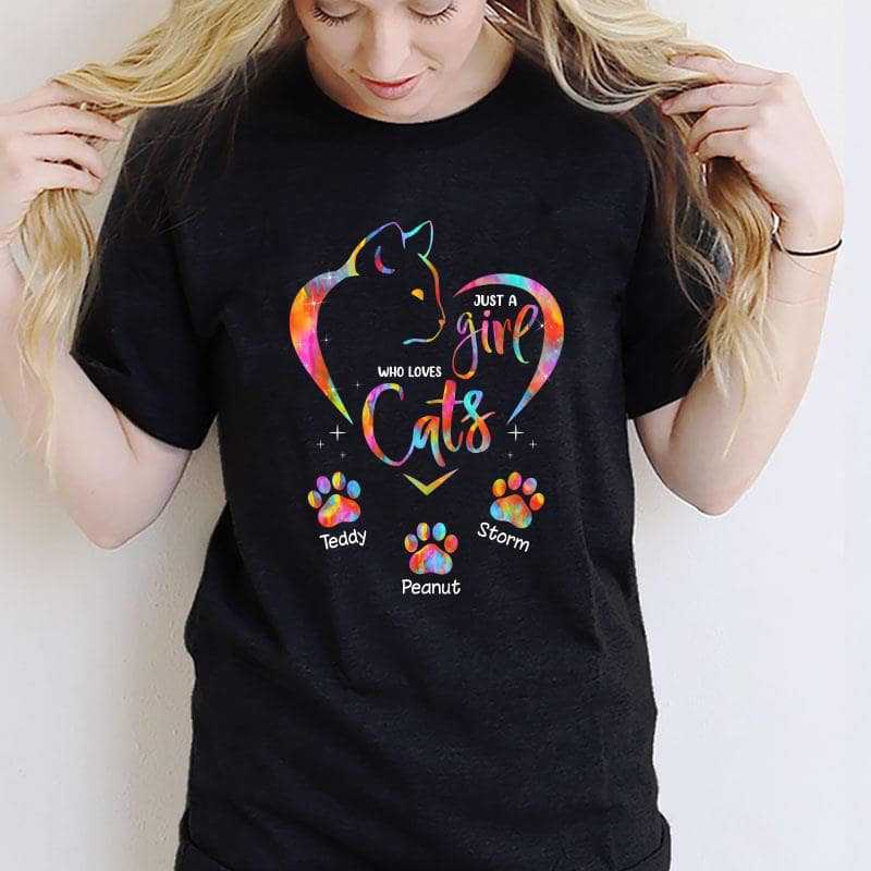 Colorful Cat Lovers Heart Paw Personalized Shirt