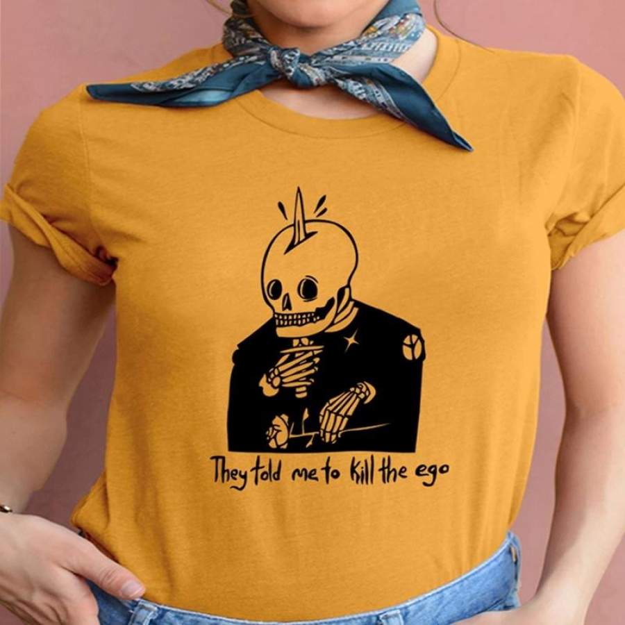 Cool Skull Graphic Printed Casula Tee Shirt They Told Me To Kill the Ego Personalized Shirt