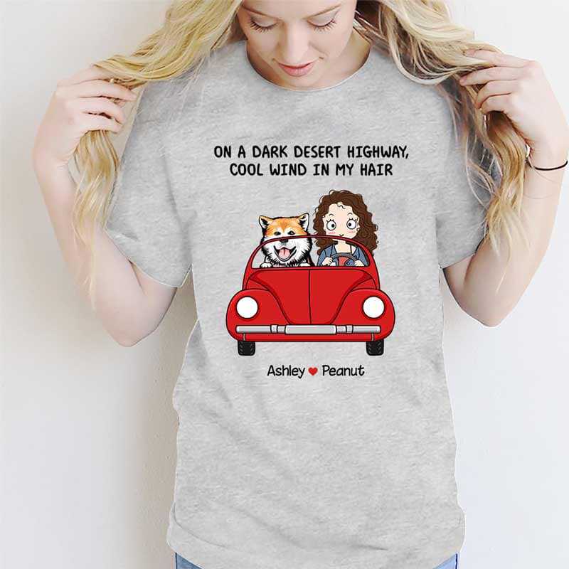 Cool Wind In My Hair Chibi & Dog On Car Personalized Shirt