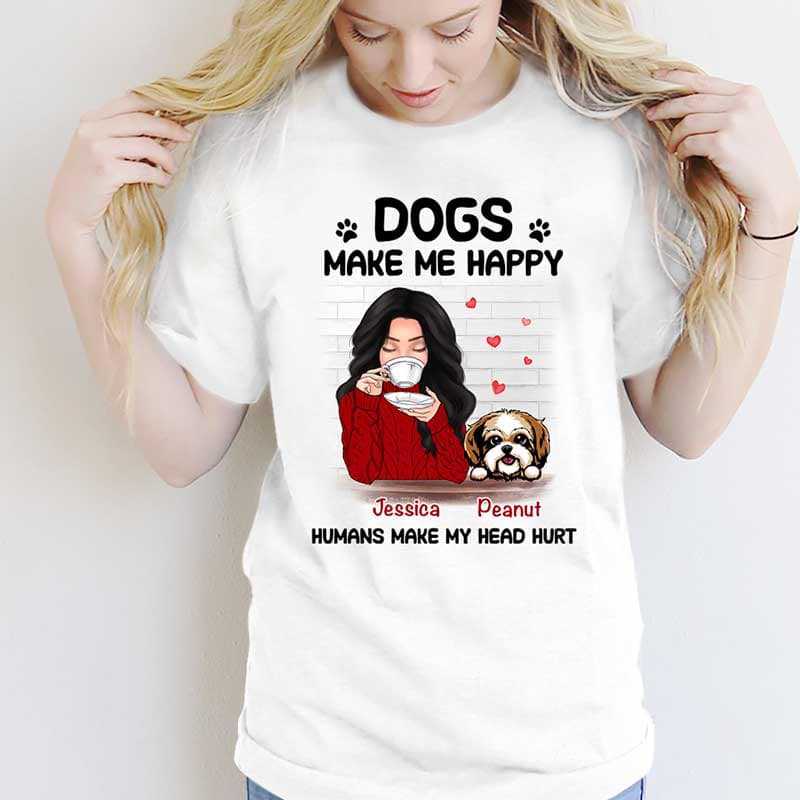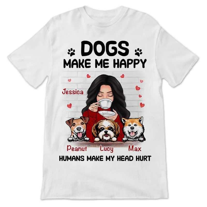 Dogs Make Me Happy Red Patterned Personalized Shirt