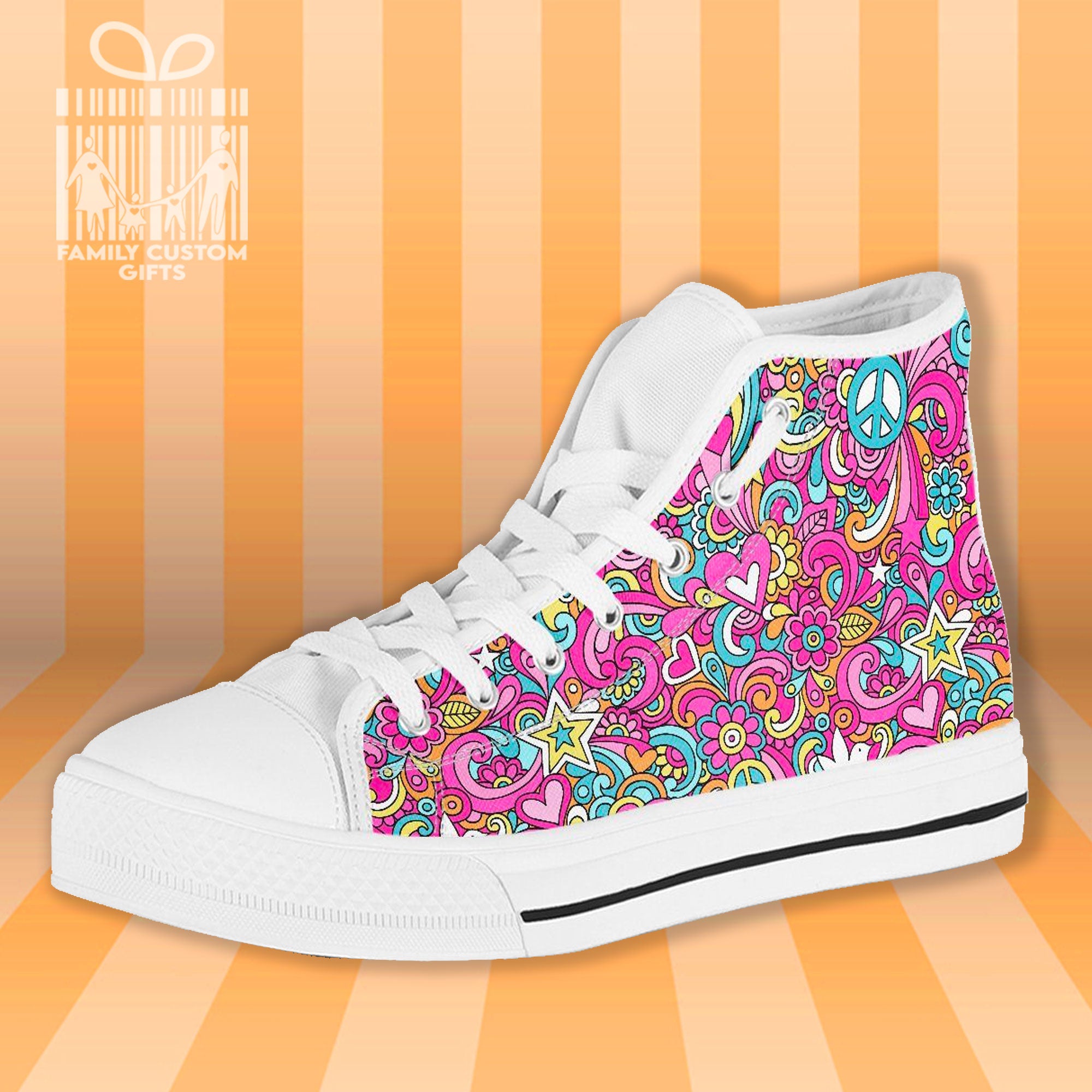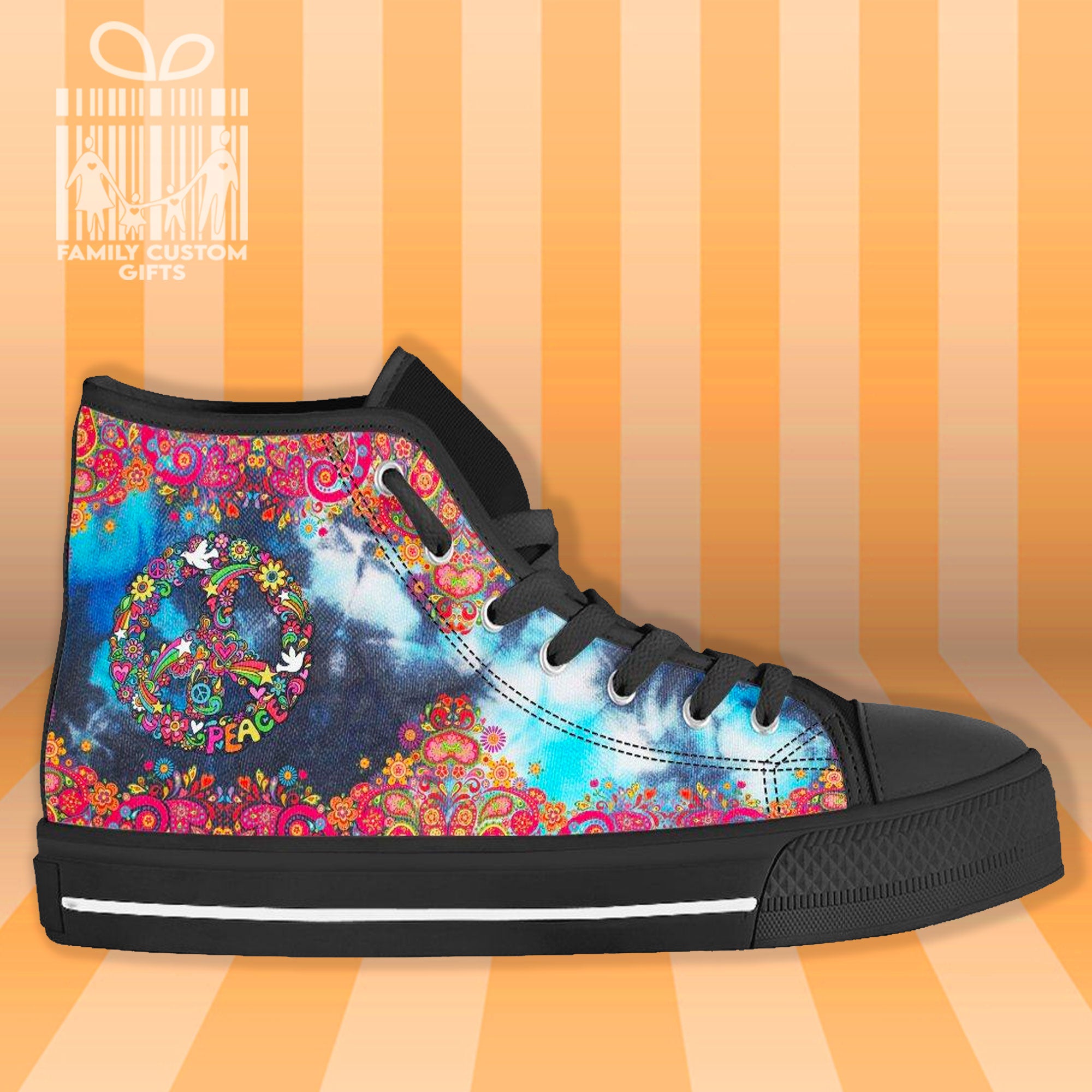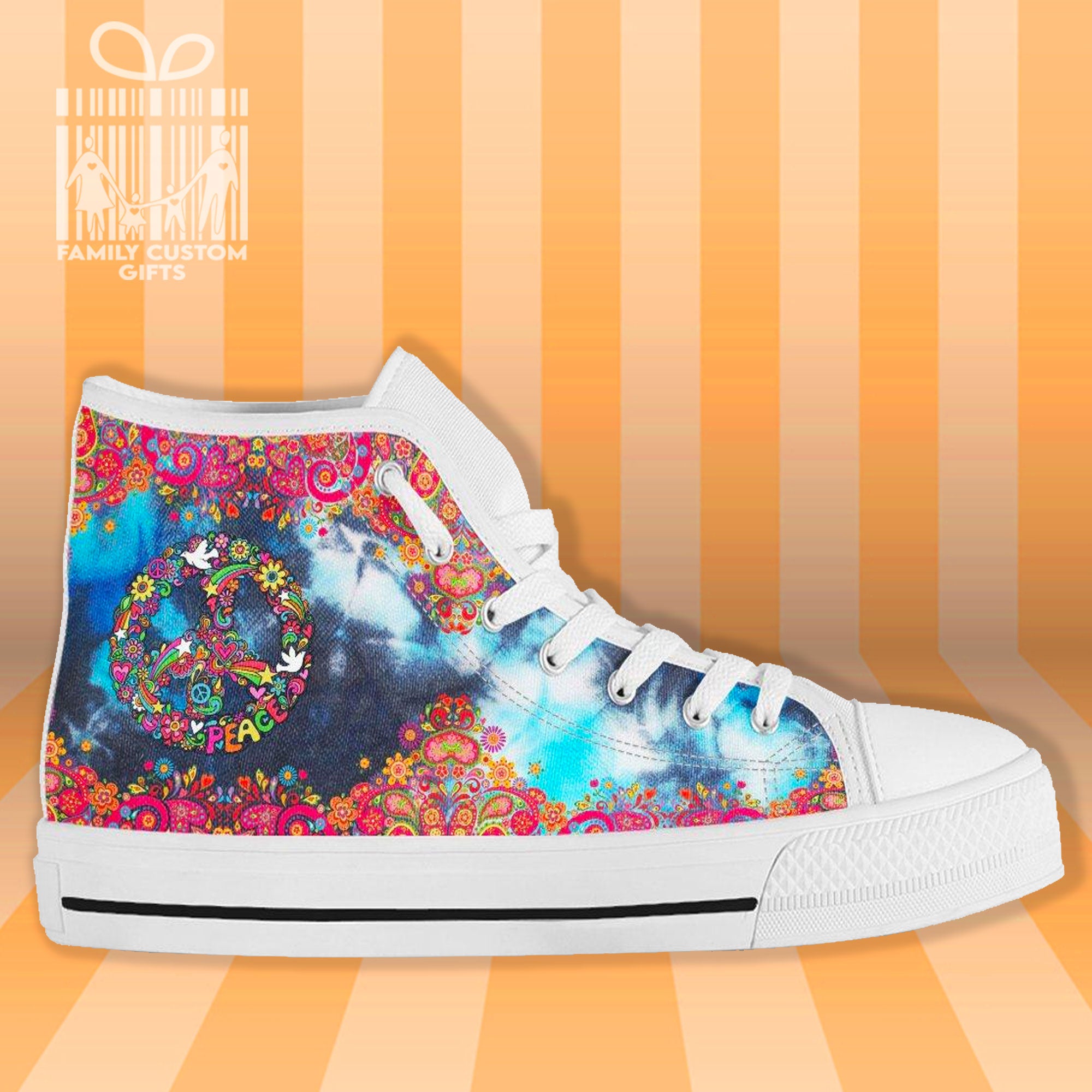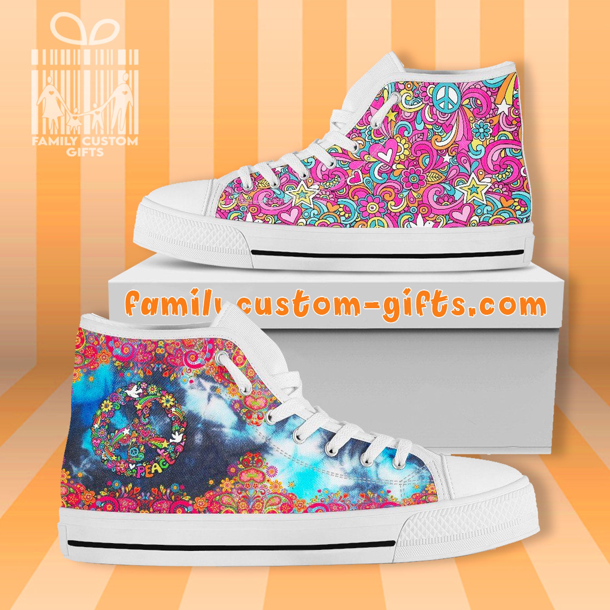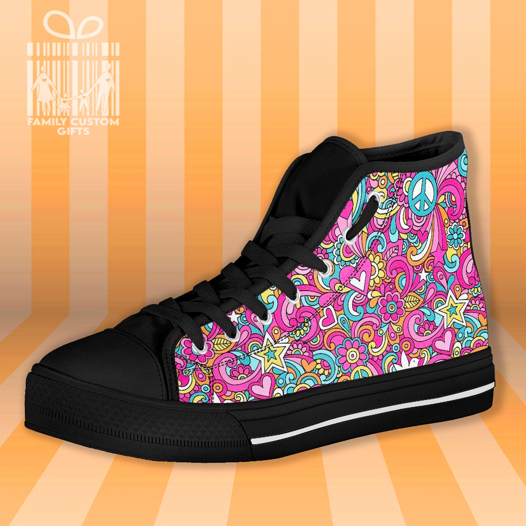 Floral Hippie Peace Sign High Top Canvas Shoes For Men Women 3D Prints Fashion Sneakers