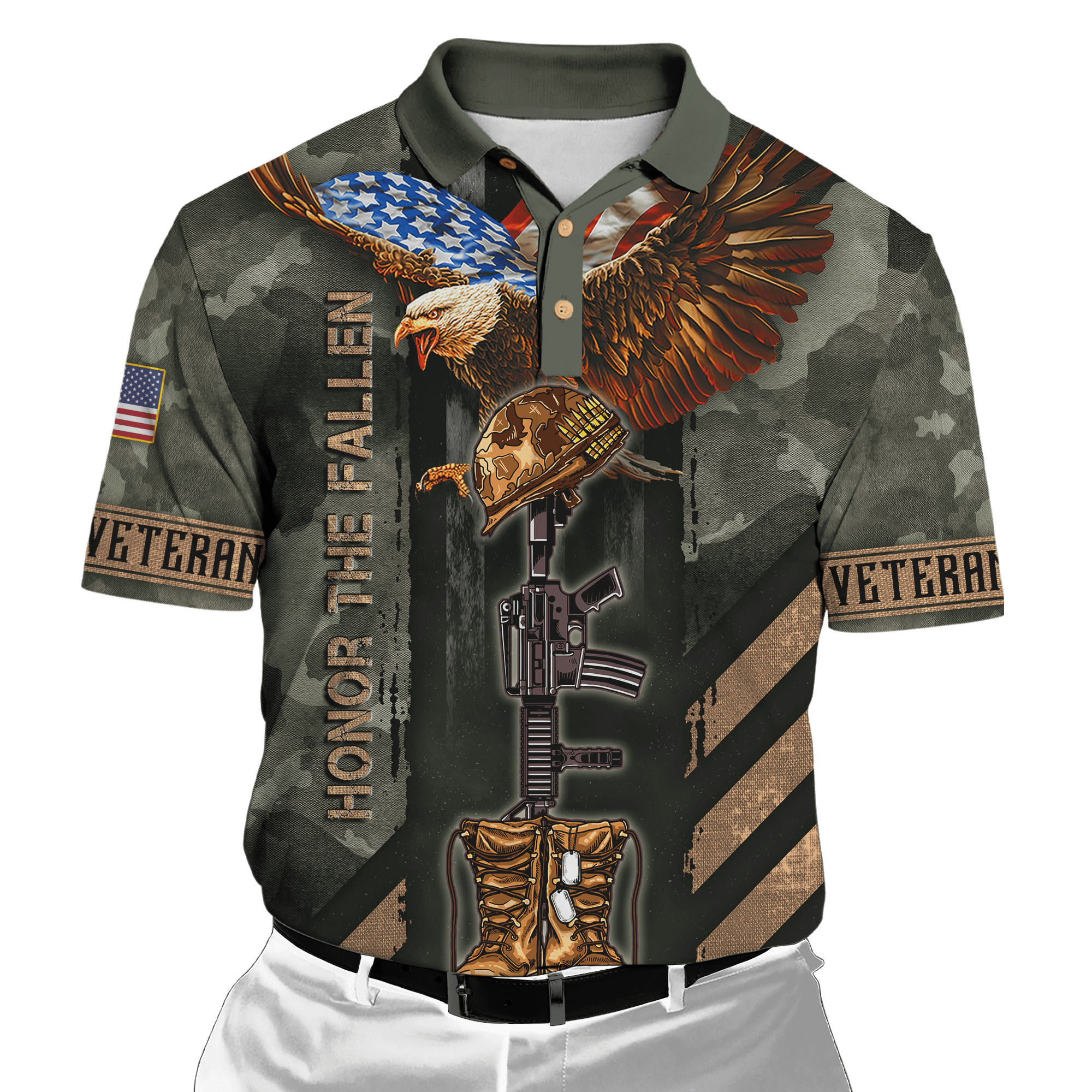 Gift Shirt For Veteran, Us Army Eagle Honor The Fallen, 3D All Over Printed Unisex Polo Shirts