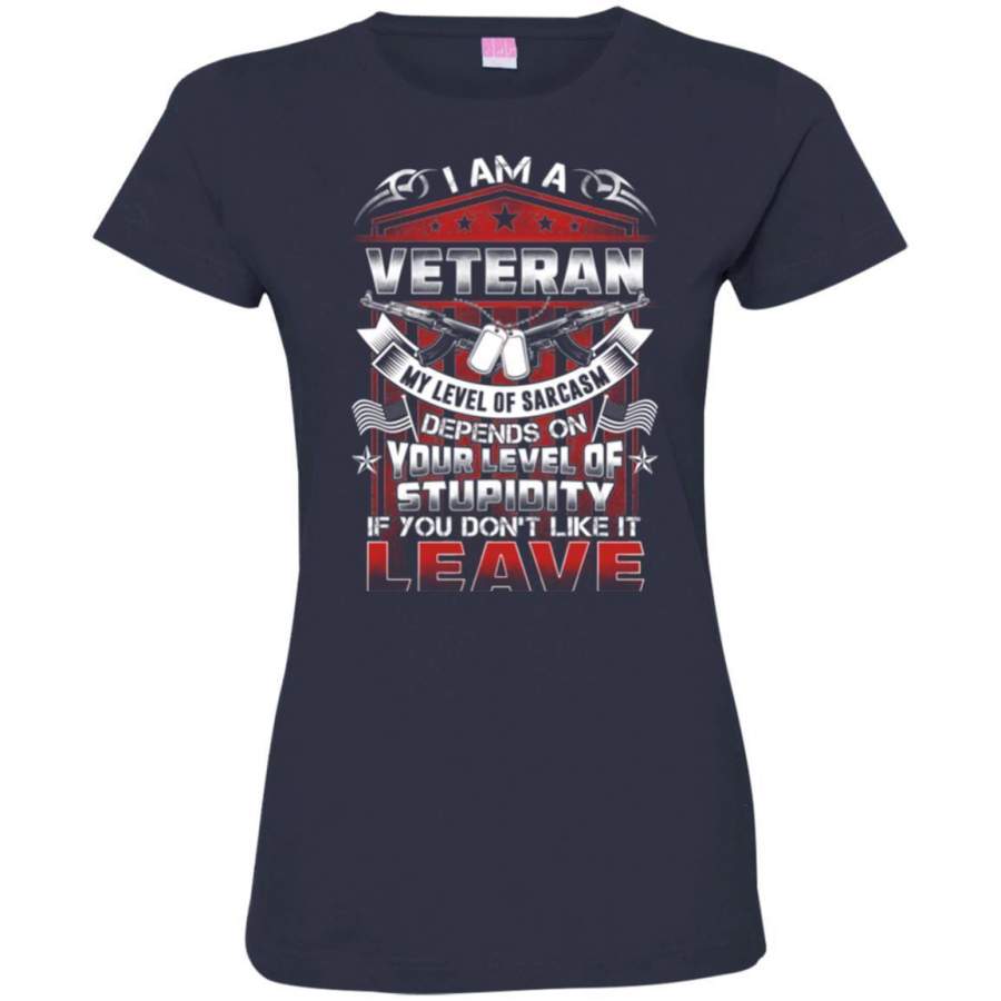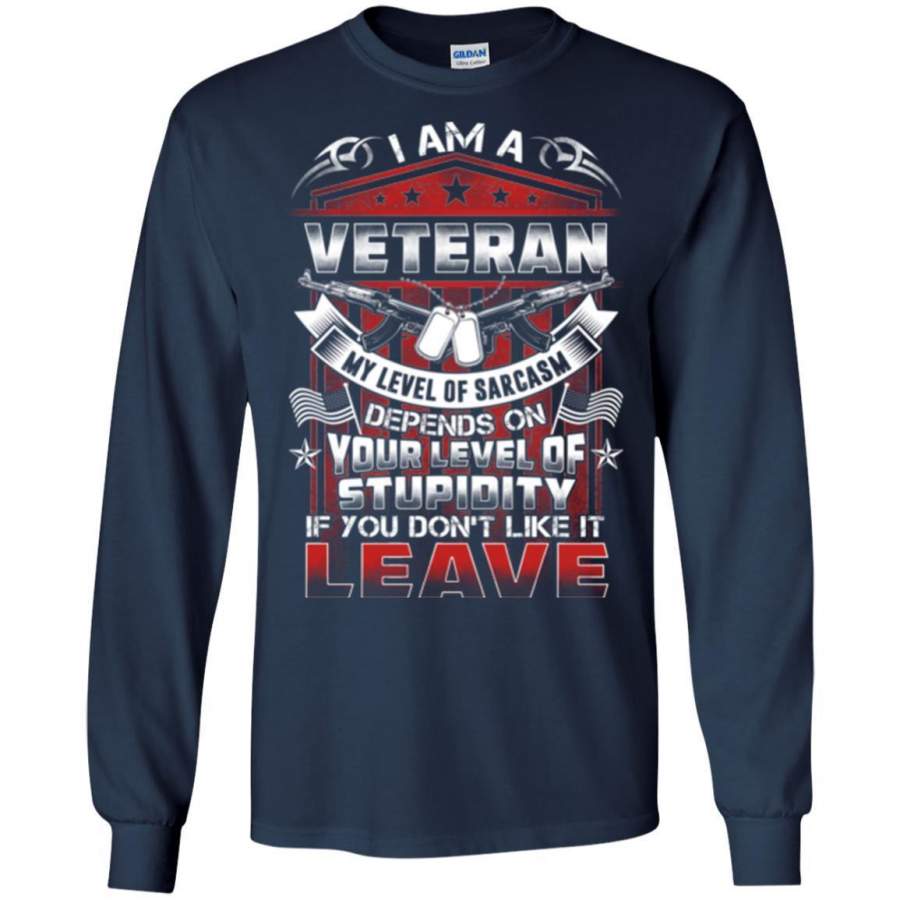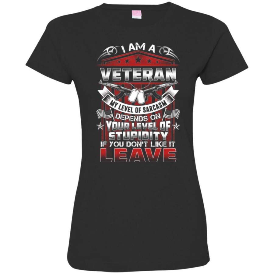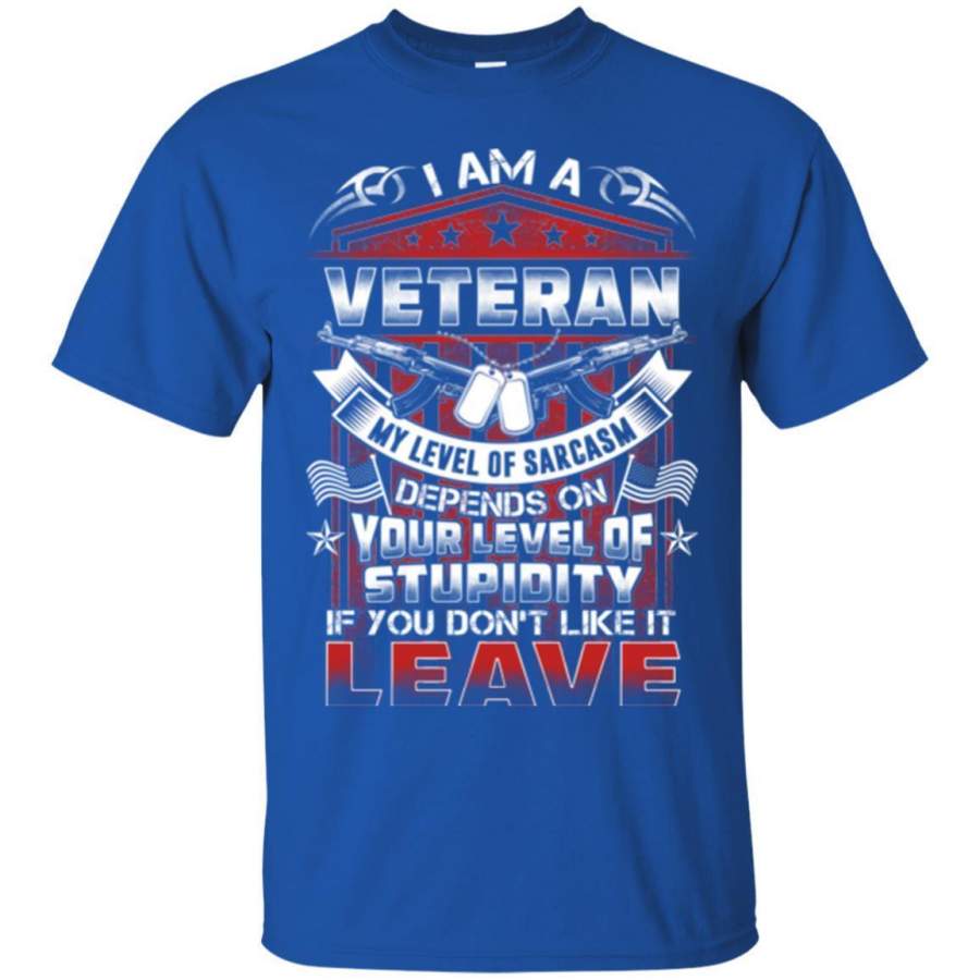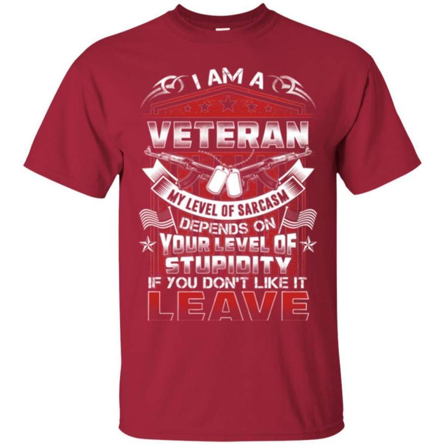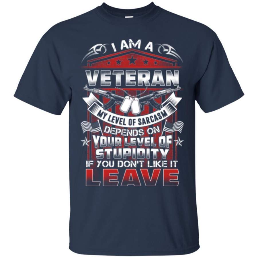 I AM A VETERAN MY LEVEL OF SARCASM DEPENDS ON YOUR LEVEL OF STUPIDITY VETERAN ARMY T SHIRT