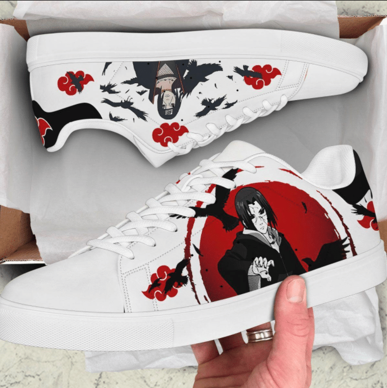 Itachi Akatsuki Naruto Low top Leather Skate Shoes, Tennis Shoes, Fashion Sneakers L98