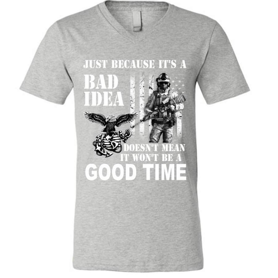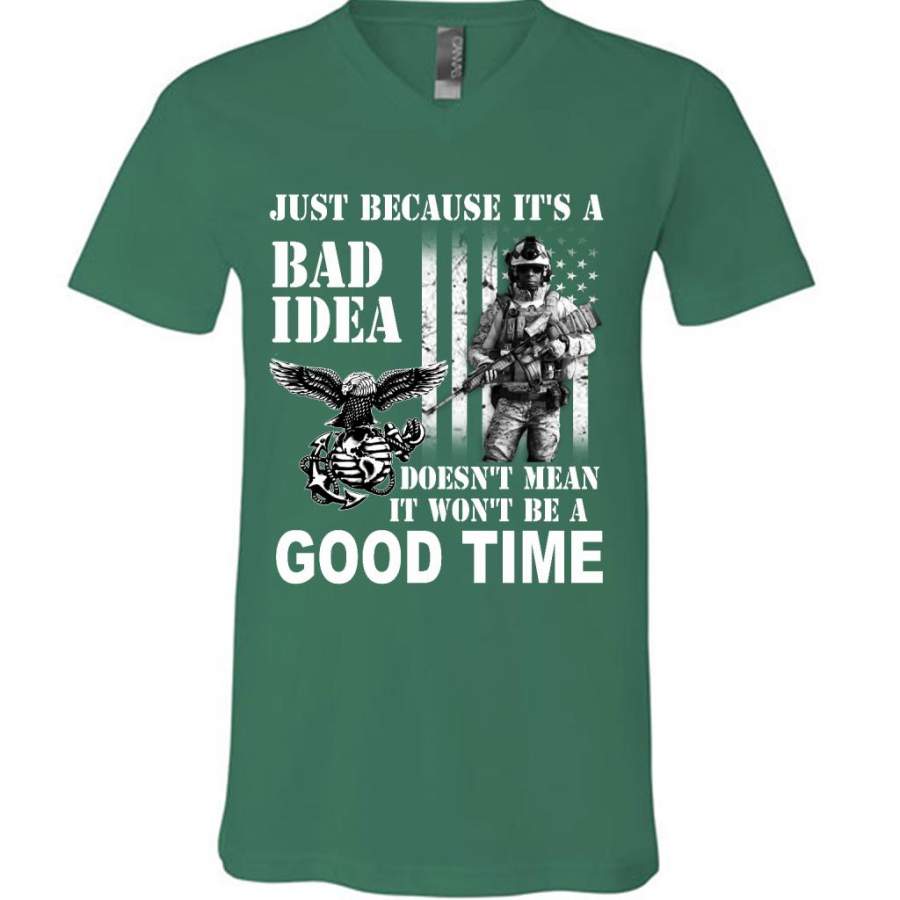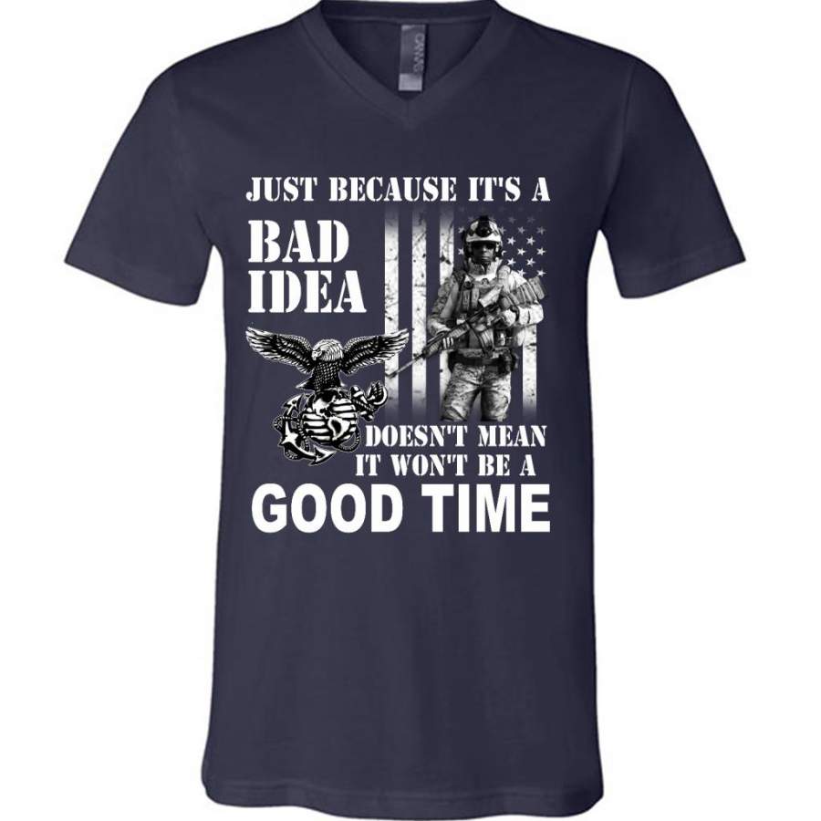 Just Because It’s A Bad Idea Doesn’t Mean It Won’t Be A Good Time, Navy Us Army – Canvas Unisex V-Neck Shirt