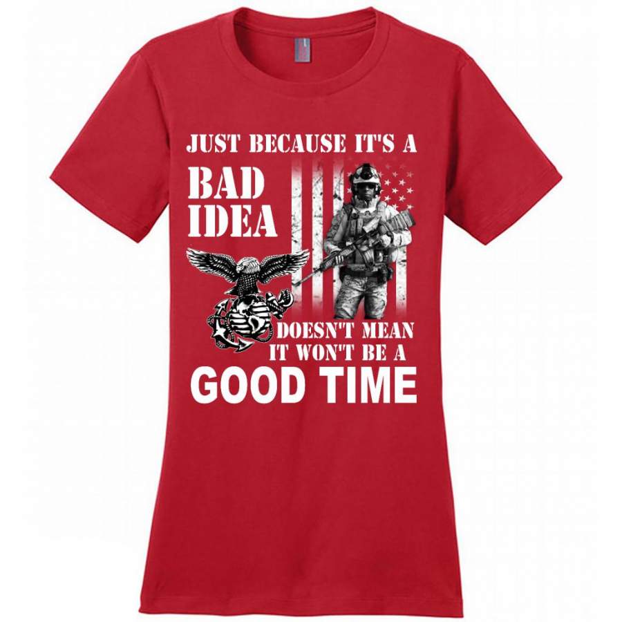 Just Because It’s A Bad Idea Doesn’t Mean It Won’t Be A Good Time, Navy Us Army – District Made Women Shirt