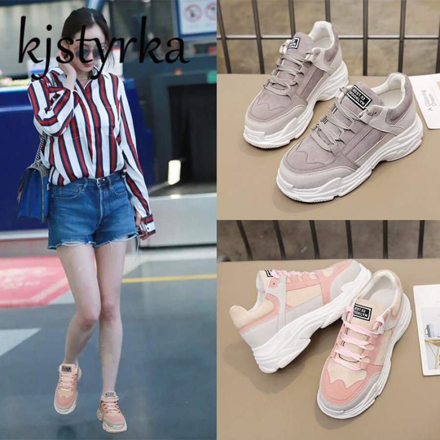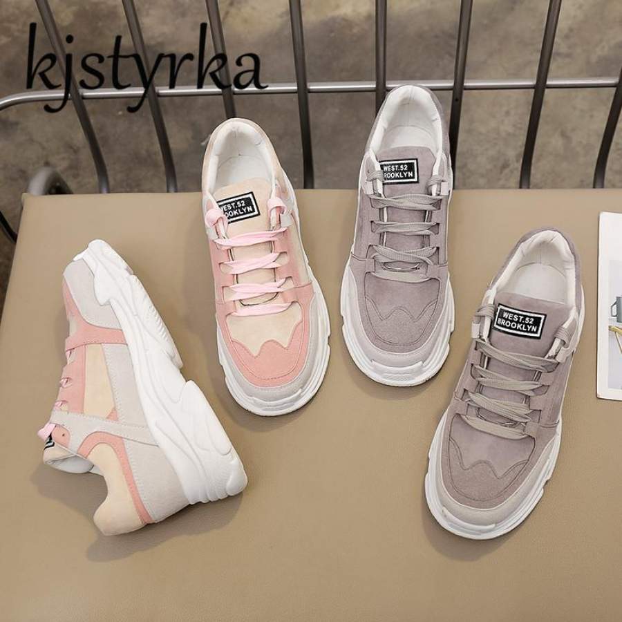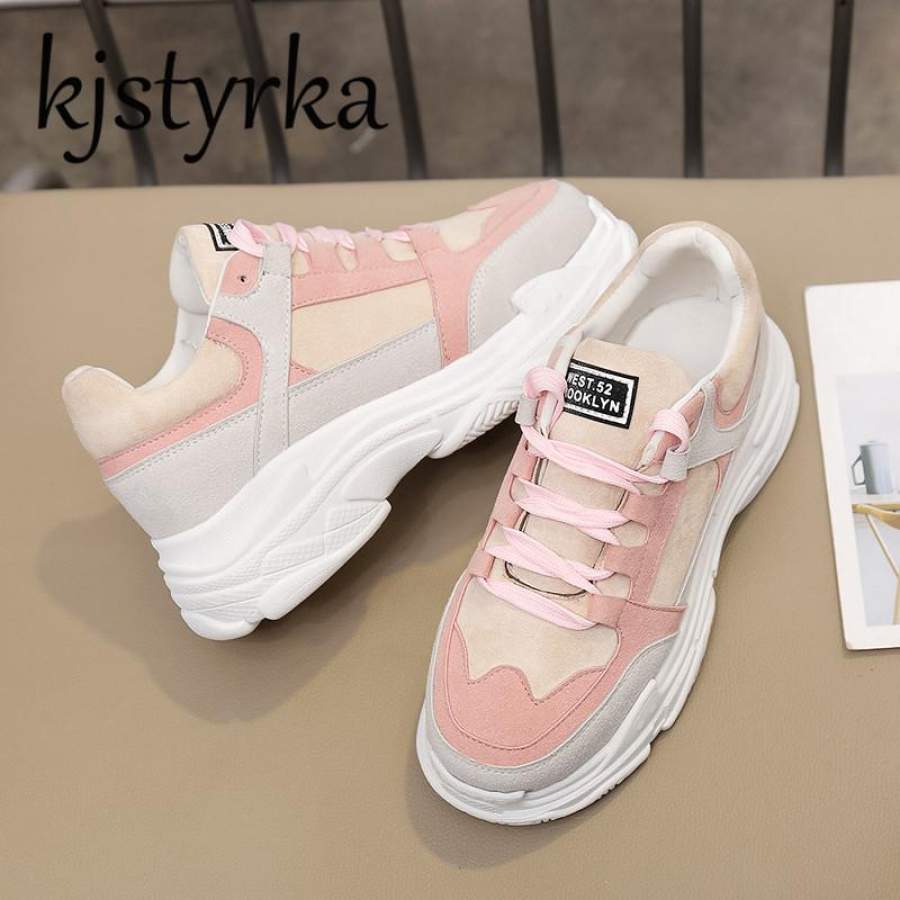 Kjstyrka women Casual shoes 2018 Spring Autumn New Fashion Sneakers Wedge Highs Hee tenis feminino Pink Lace Up Ladies Shoes