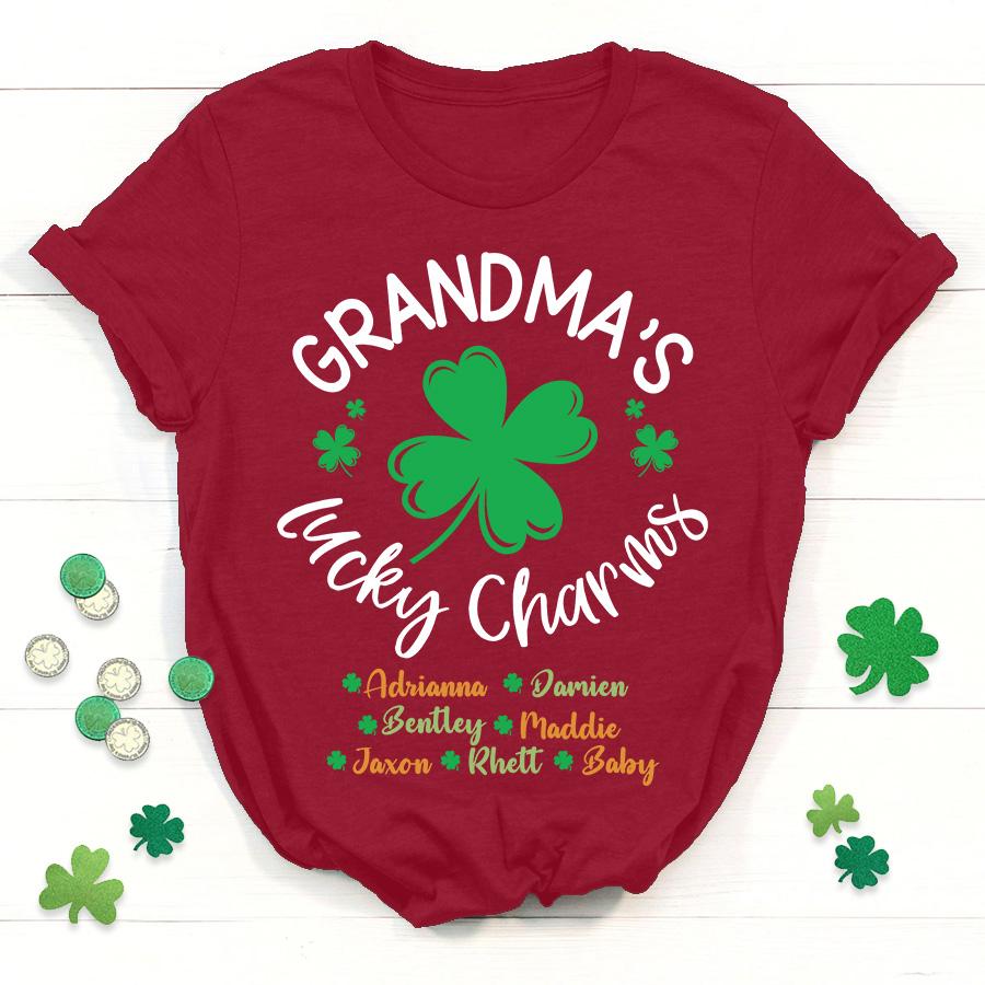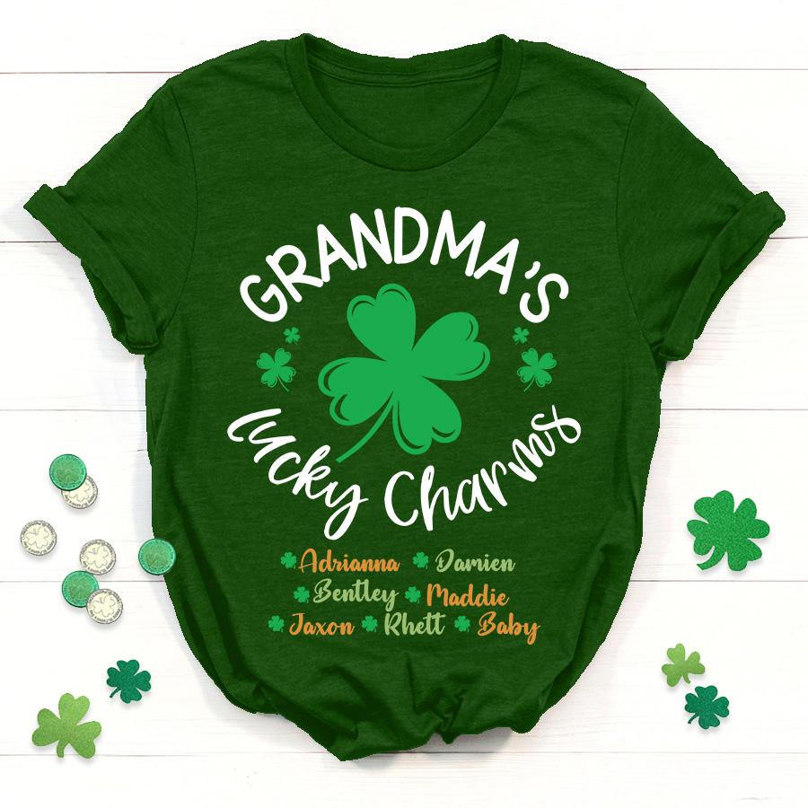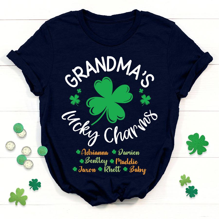 Lovelypod – Personalized Shirt, Grandma’S Lucky Charms Shirt, St Patrick’S Day Shirt, Grandma Gift For Grandma Tee With Grandkids Names