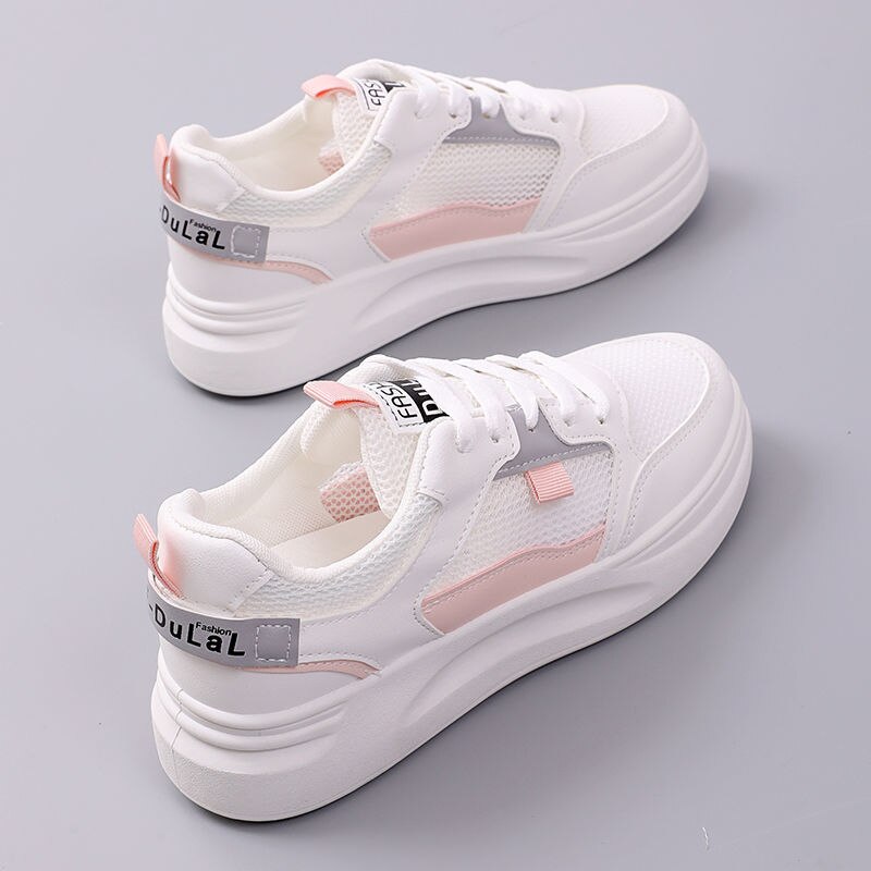 Microdeer 2022 Fashion Sneakers Women’S Shoe Summer New Mid Heel Comfortable Sport Shoe Lacing Breathable Ladies Casual Light Mesh Shoe