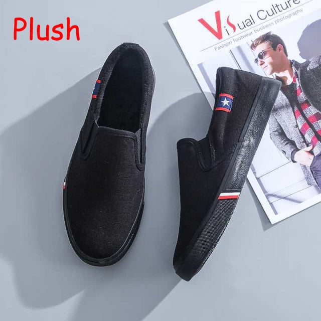 Microdeer Mens Shoes Casual Canvas Spring Summer Slip-On Unisex Man Fashion Sneakers Flats Breathable Light Black Lovers Shoes Footwear