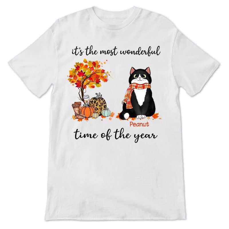 Most Wonderful Time Autumn Fluffy Cat Personalized Shirt – Clx1 Cmoa207C