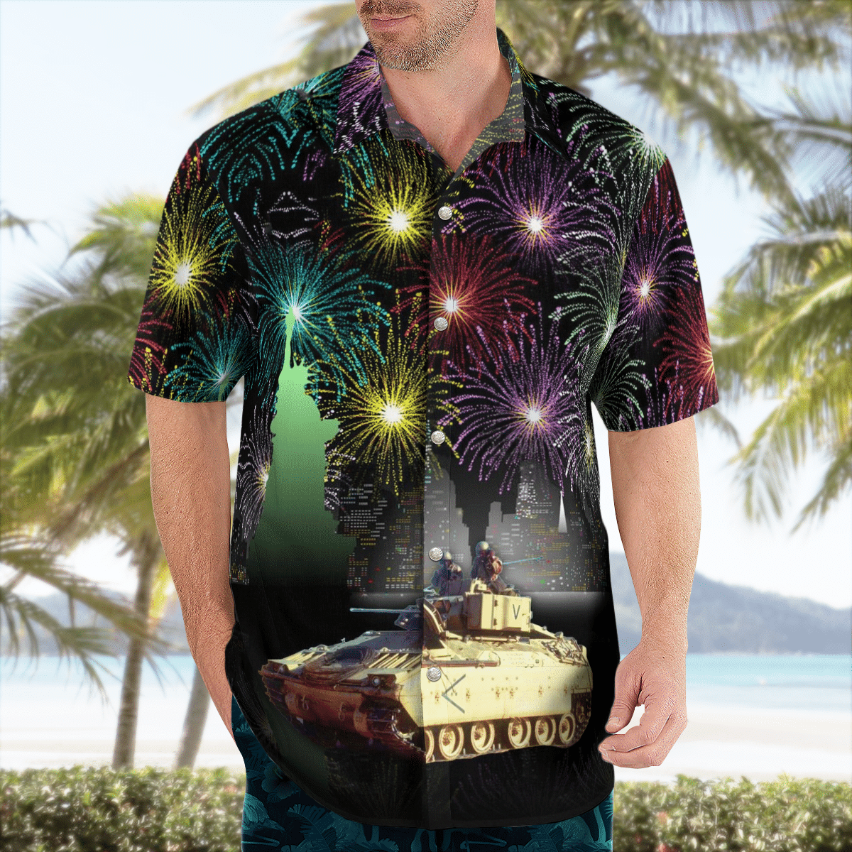 Nlmp1205Bg09 Us Army M2/M3 Bradley Fighting Vehicle Firework 4Th Of July Hawaiian Shirt