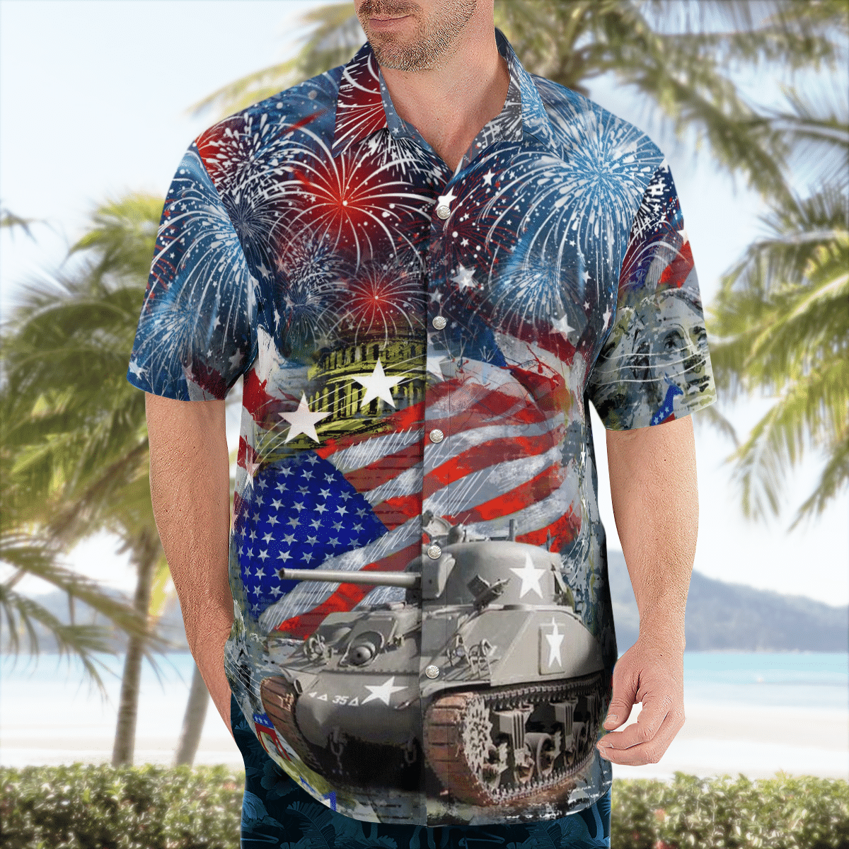 Nlsi0606Bg15 Military Army M4A3 Sherman, 4Th Of July Hawaiian Shirt