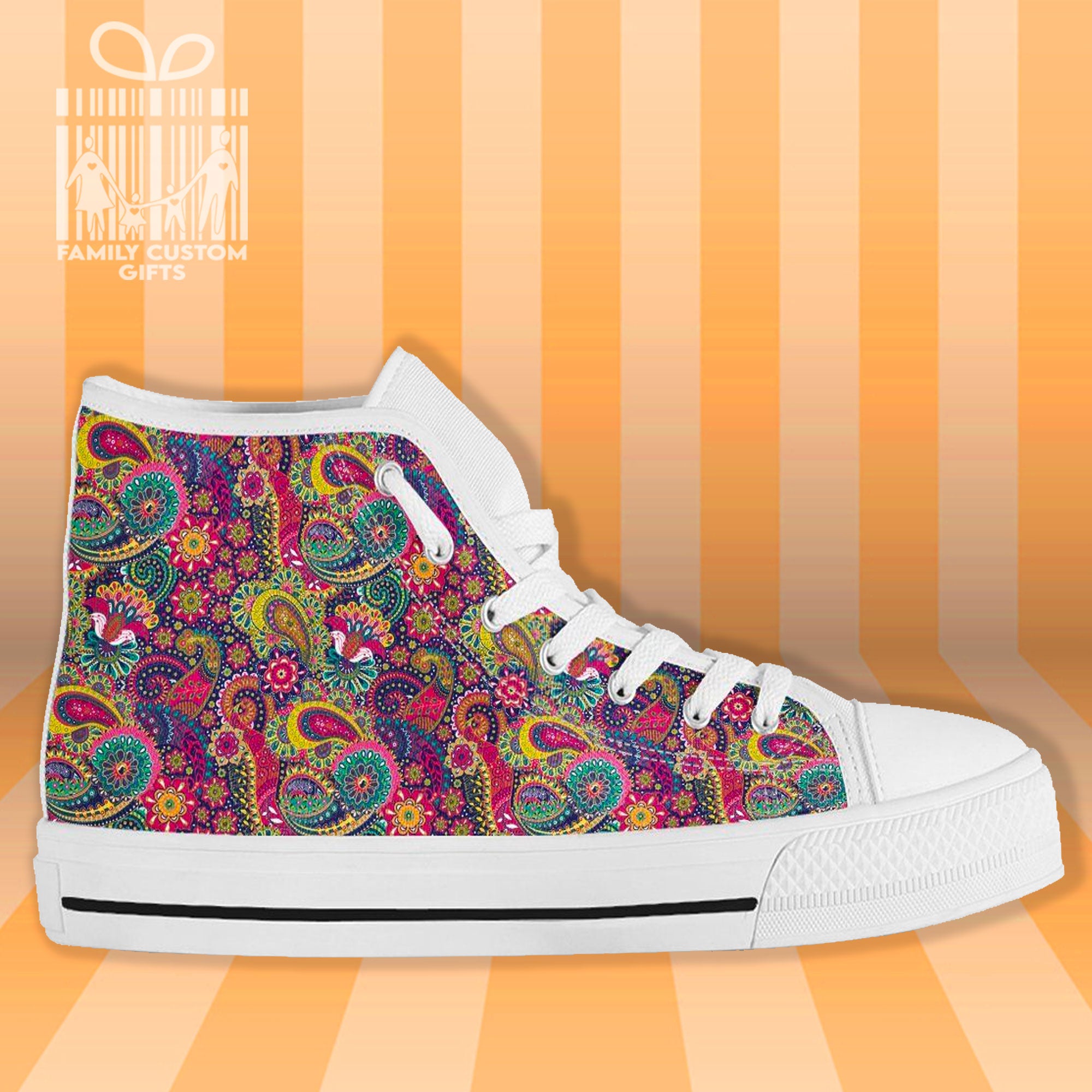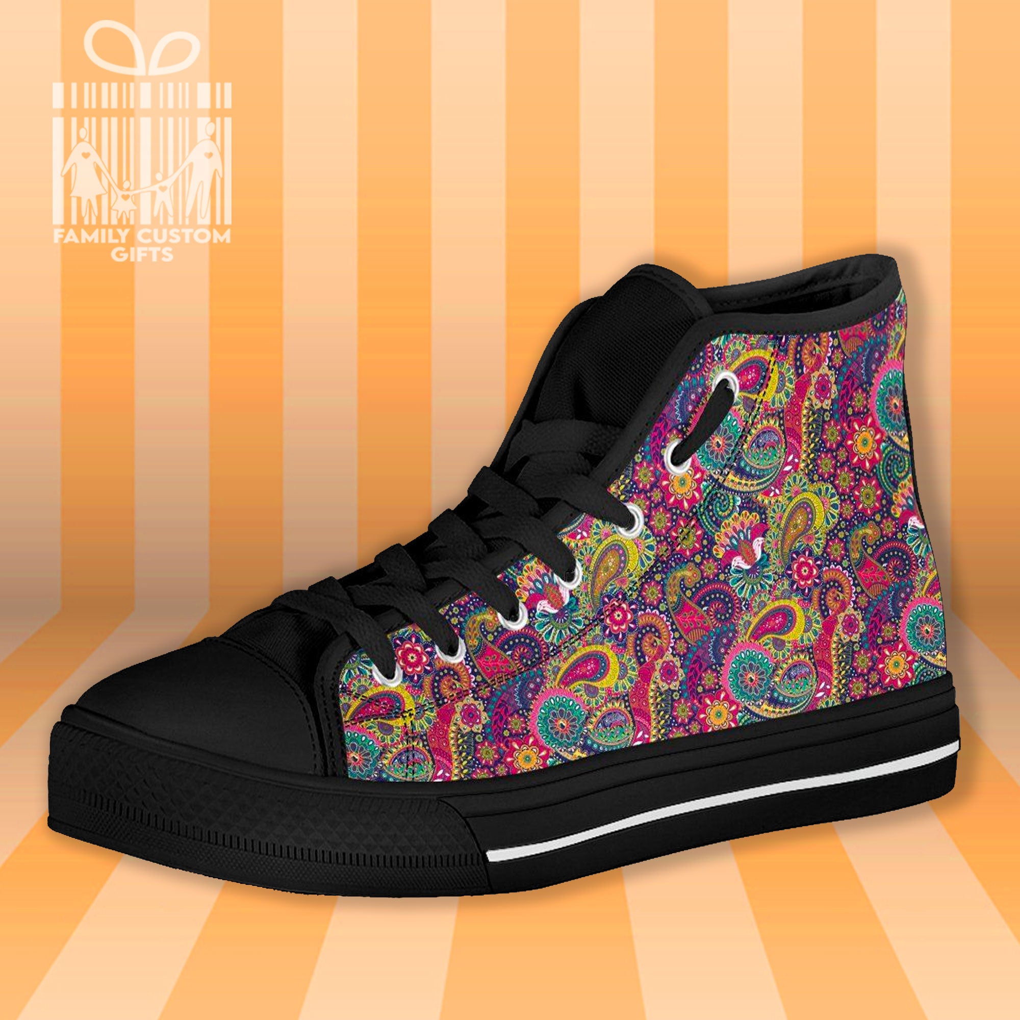 Paisley Henna Watercolor High Top Canvas Shoes For Men Women 3D Prints Fashion Sneakers