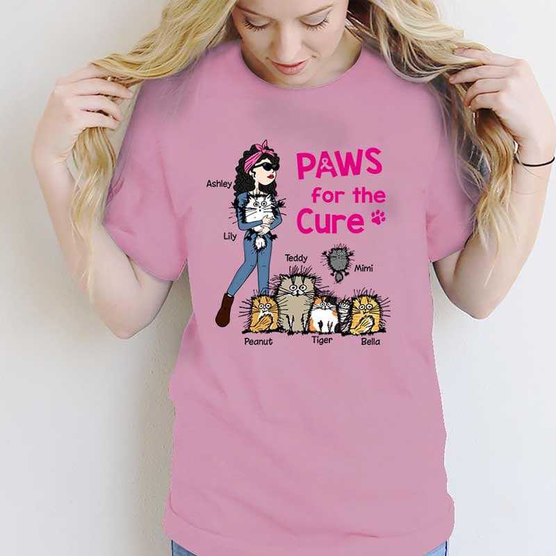 Paws For The Cure Cat Breast Cancer Stick Woman Personalized Shirt