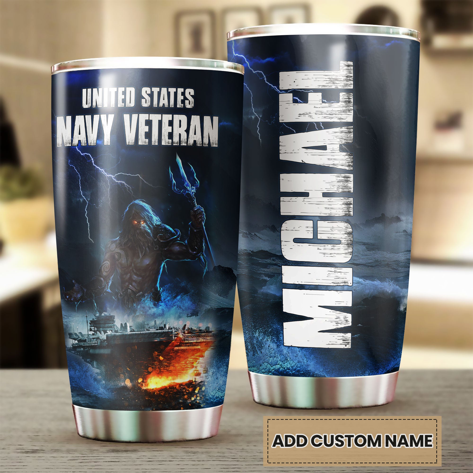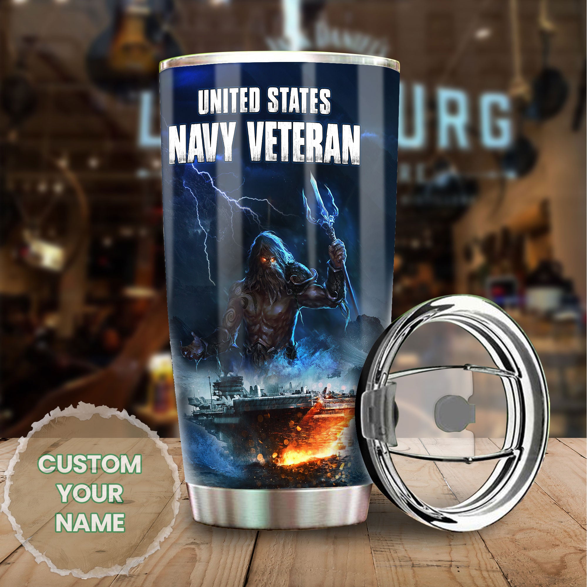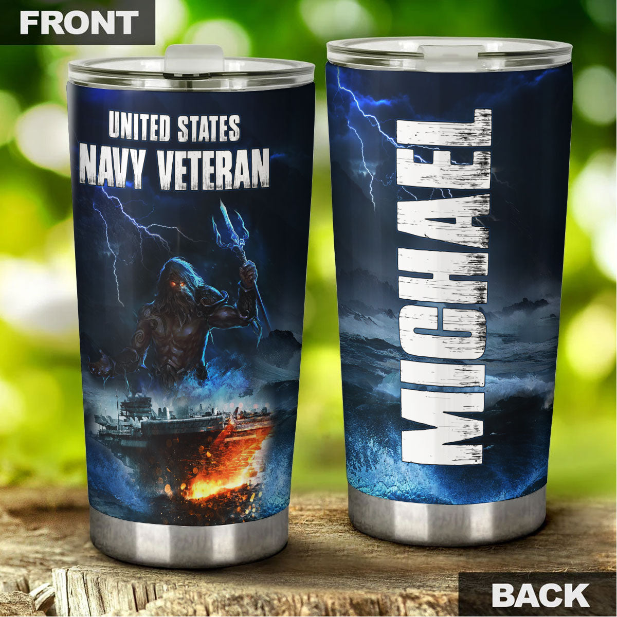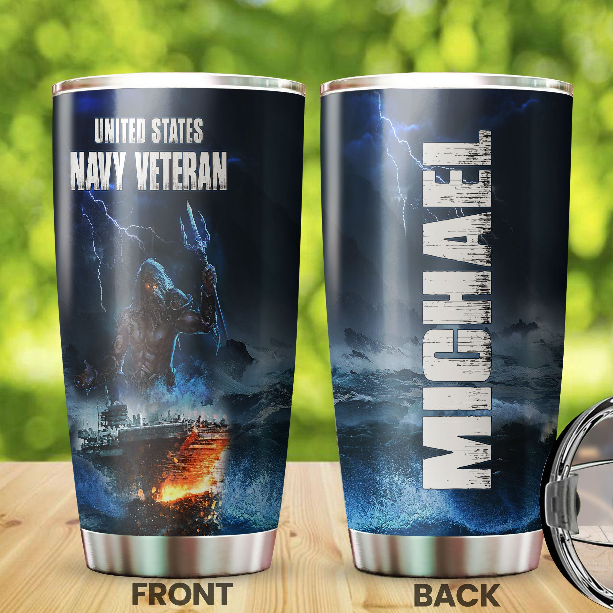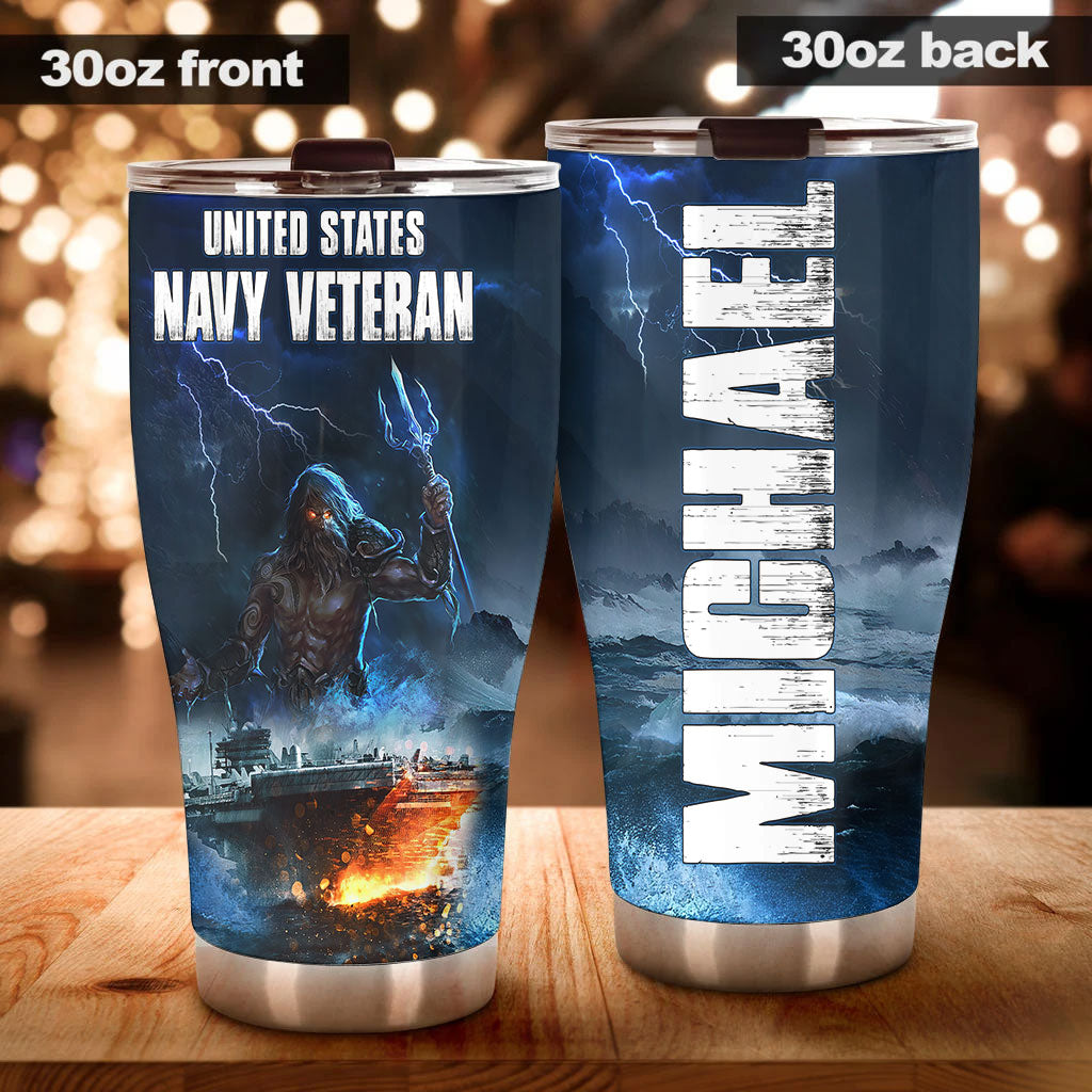 Personalized American United States Navy Veteran Army Stainless Steel Tumbler – Double-Walled Insulation Travel Thermal Cup With Lid Gift For 4Th Of July Veteran Marines So