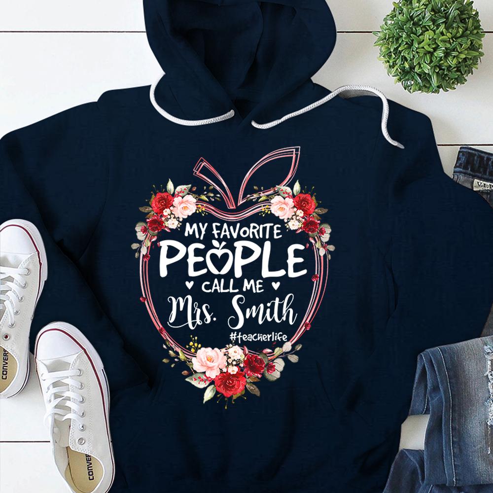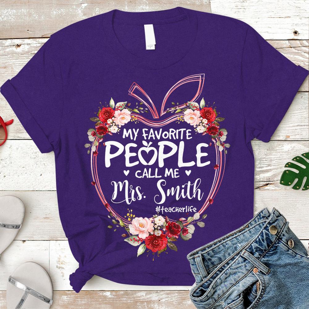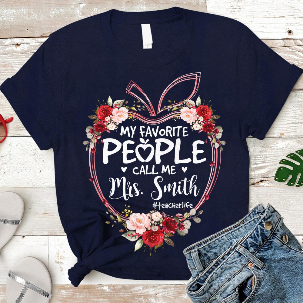 Personalized Shirt My Favorite People Call Me Teacher Last Name Apple Floral Hashtag Shirt, Teacher Life Shirt H2511