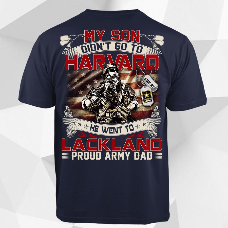 Personalized Shirt My Son Didn’T Go To Harvard He Went To Combat Training Location Shirt For Army Marine Air Force Navy Coast Guard Military Family Member H2511