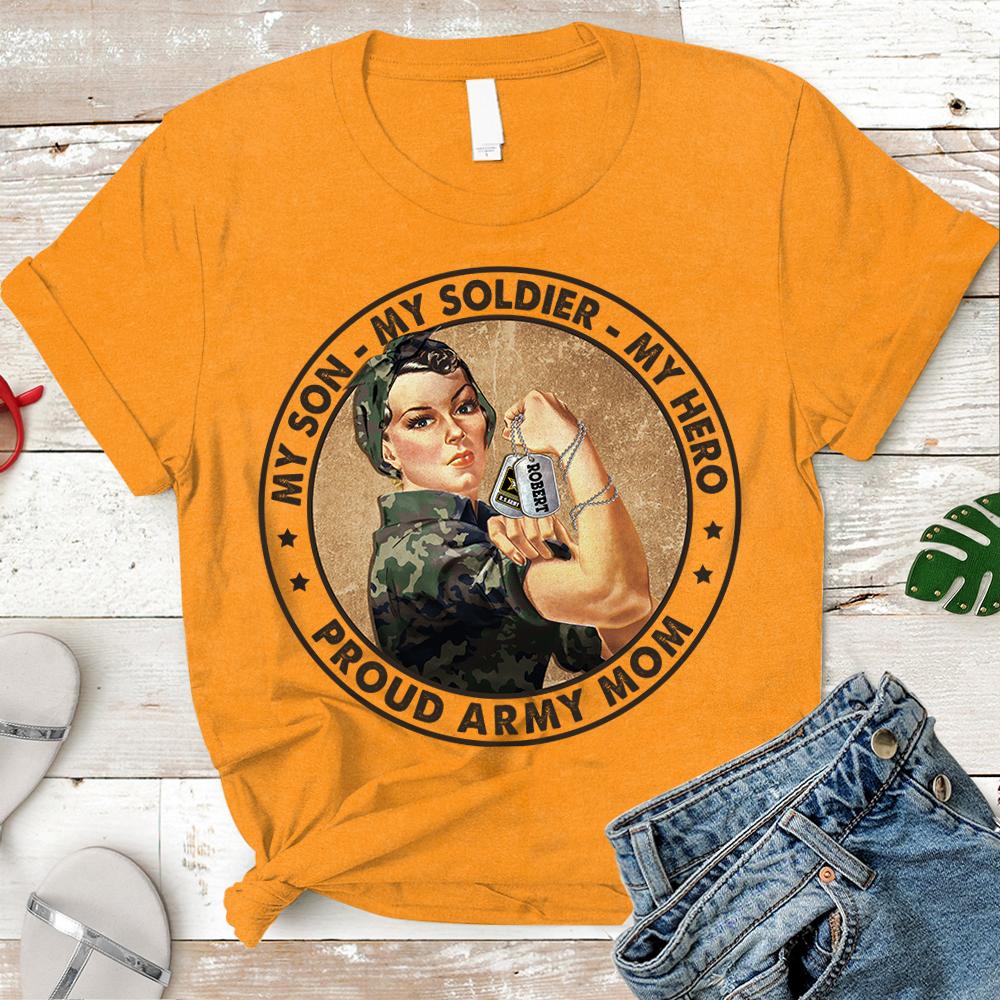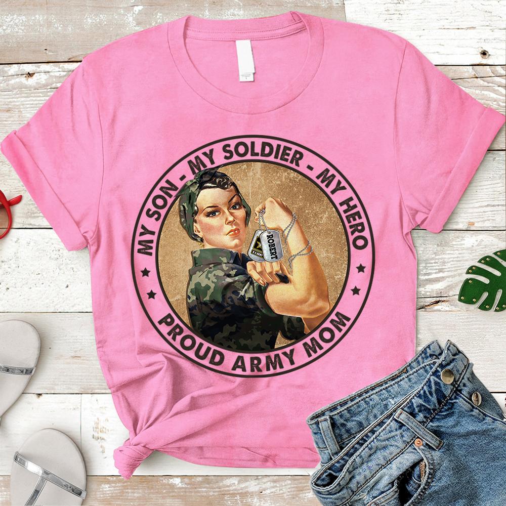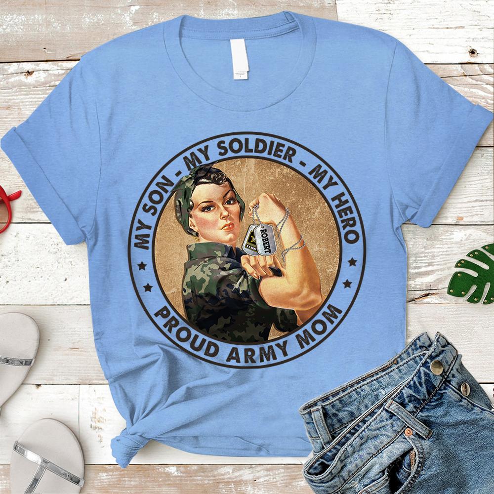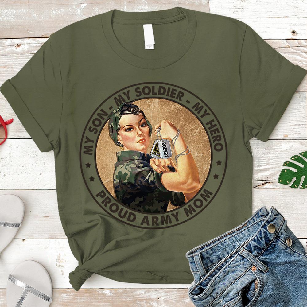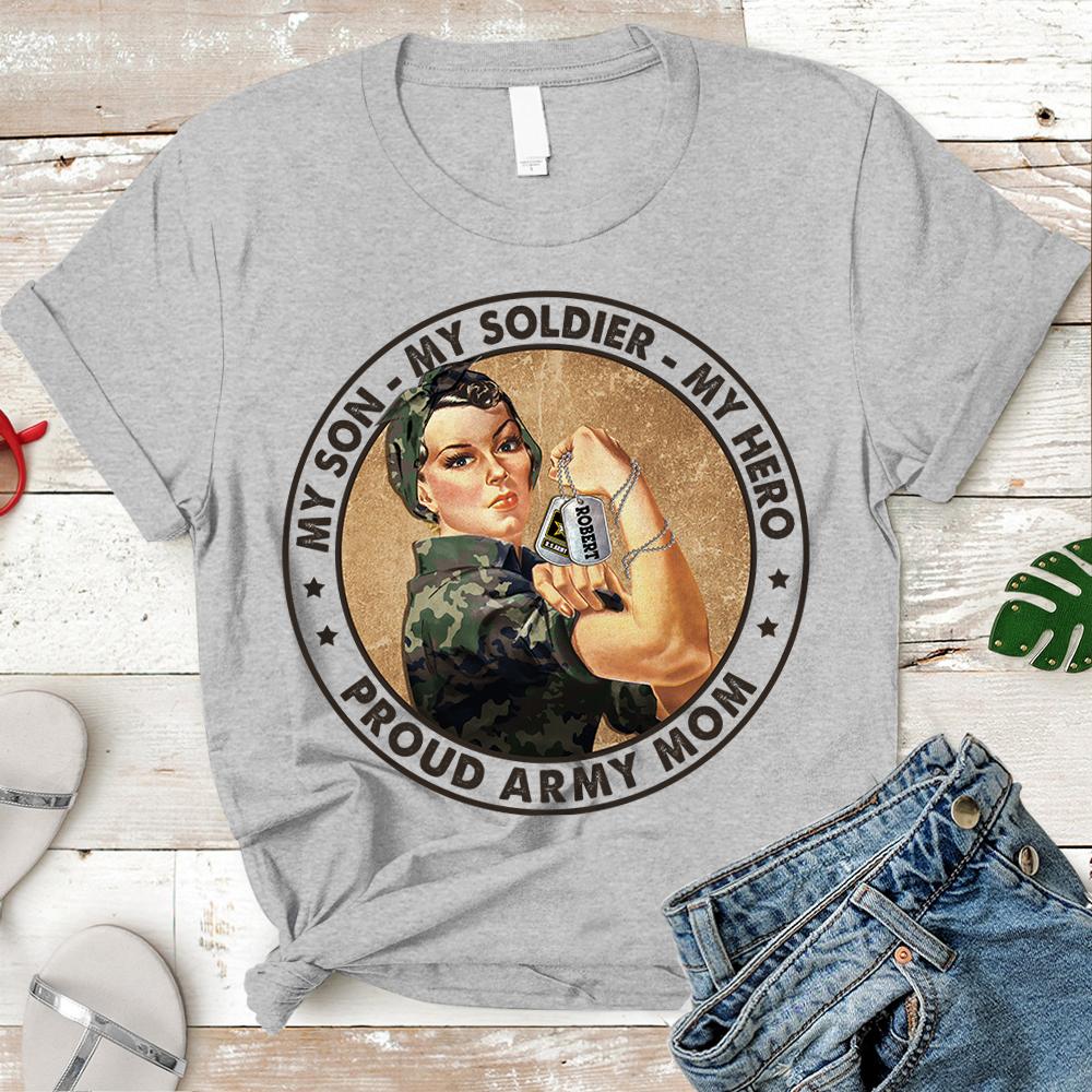 Personalized Shirt My Son My Soldier My Hero Proud Army Mom Shirt For Military Army Marine Air Force Navy Coast Guard Mom Sister Wife Grandma H2511