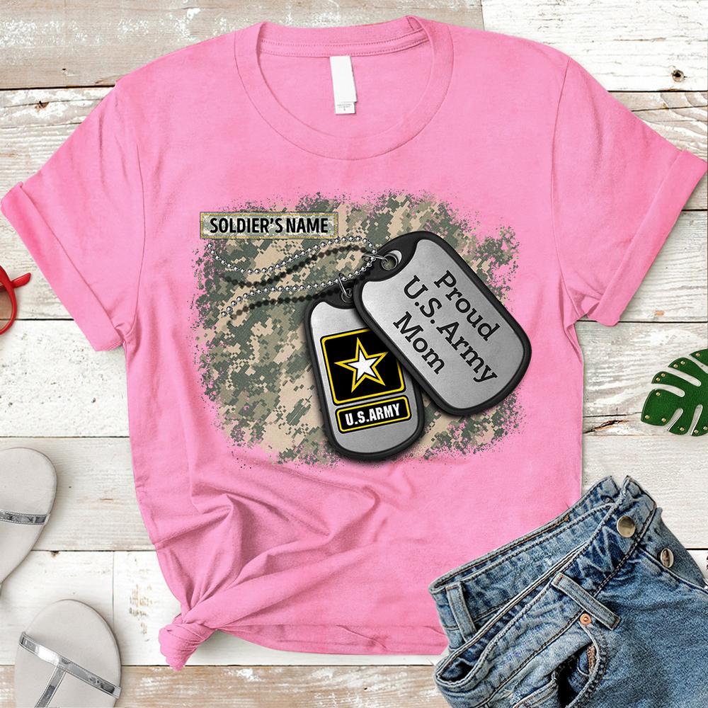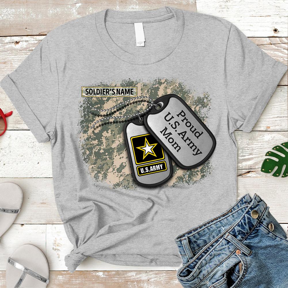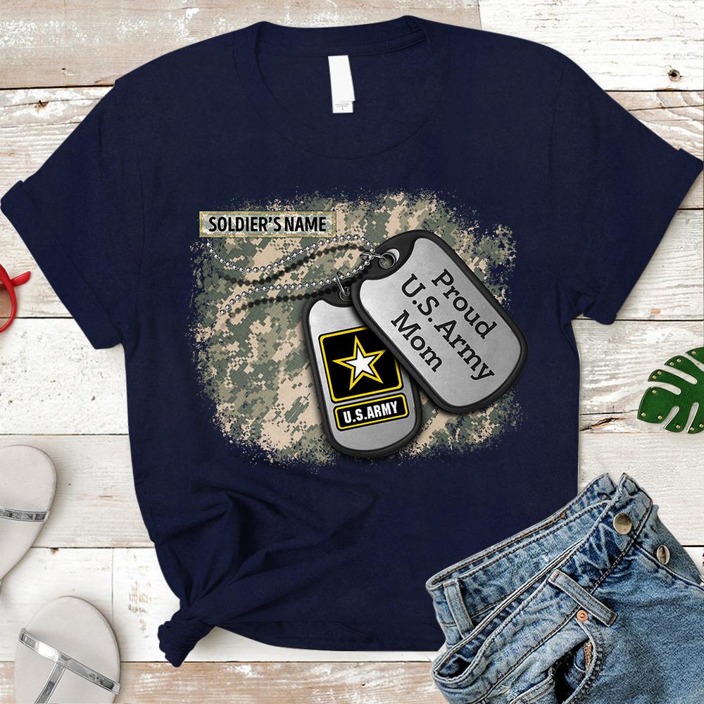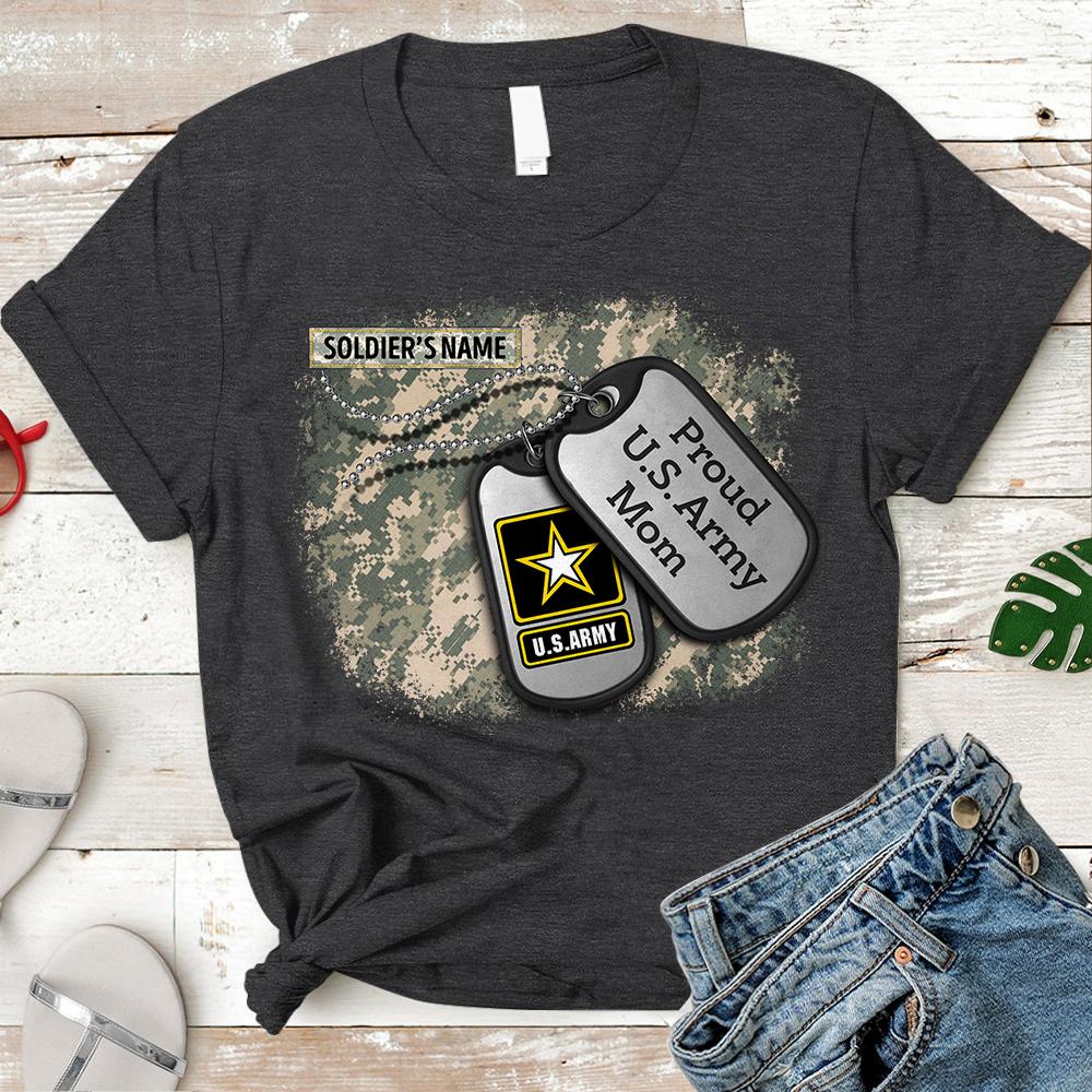 Personalized Shirt Proud Army Marine Air Force Navy Coast Guard Mom Wife Grandma Dad Military Dog Tags Camouflage Distressed Grunge Splash Shirt For Military Family Member H2511