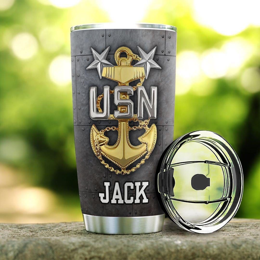 Personalized Us Army Coffee Tumbler Navy Ego And Usn Anchor Custom Coffee Tumbler Double Wall Cup Stainless Steel 20 Oz