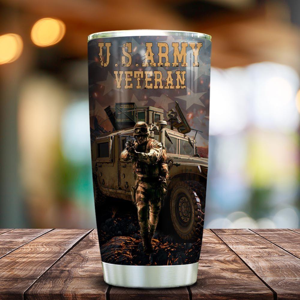 Personalized Us Army Thermal Cup 3D Us Army Veteran Customized Tumbler Double Wall Cup With Lid 20 Oz