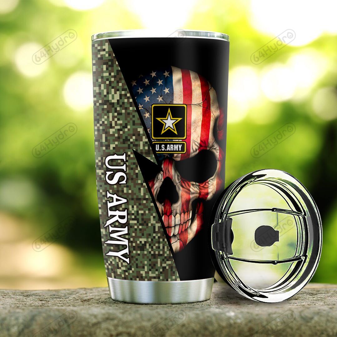 Personalized Us Army Veteran Skull Hlz2210009 Stainless Steel Tumbler Travel Customize Name, Text, Number, Image