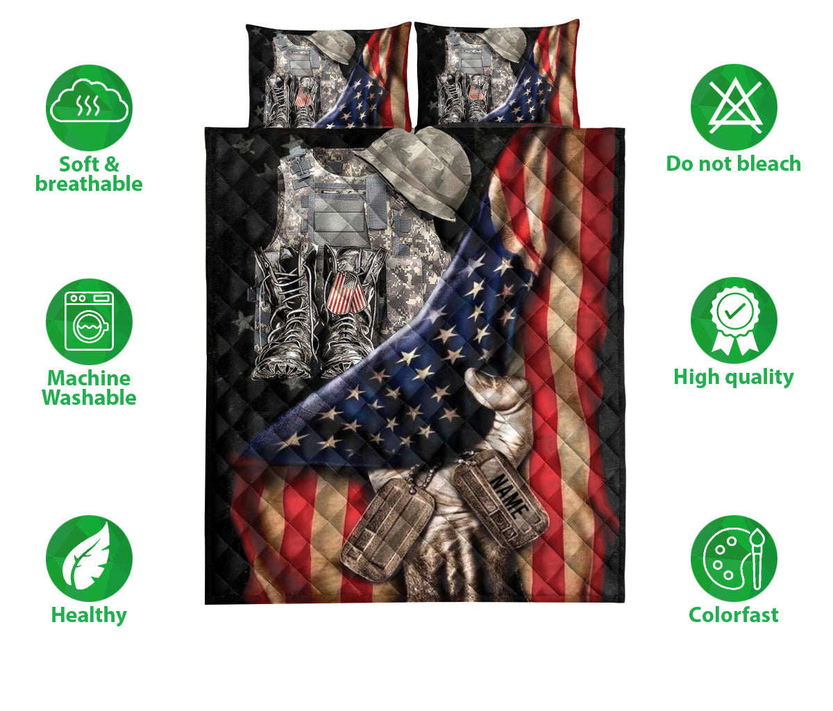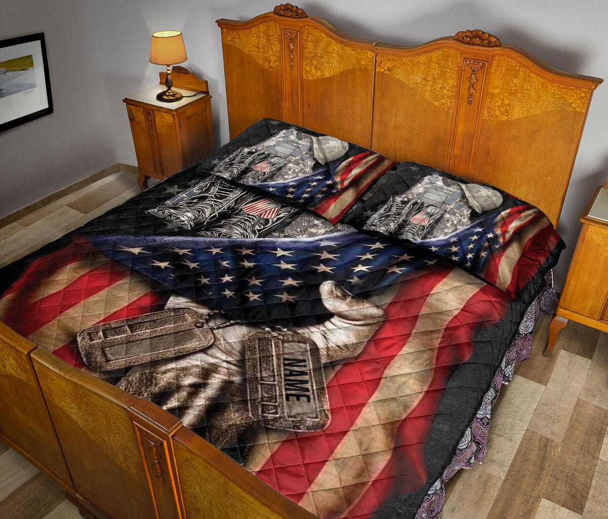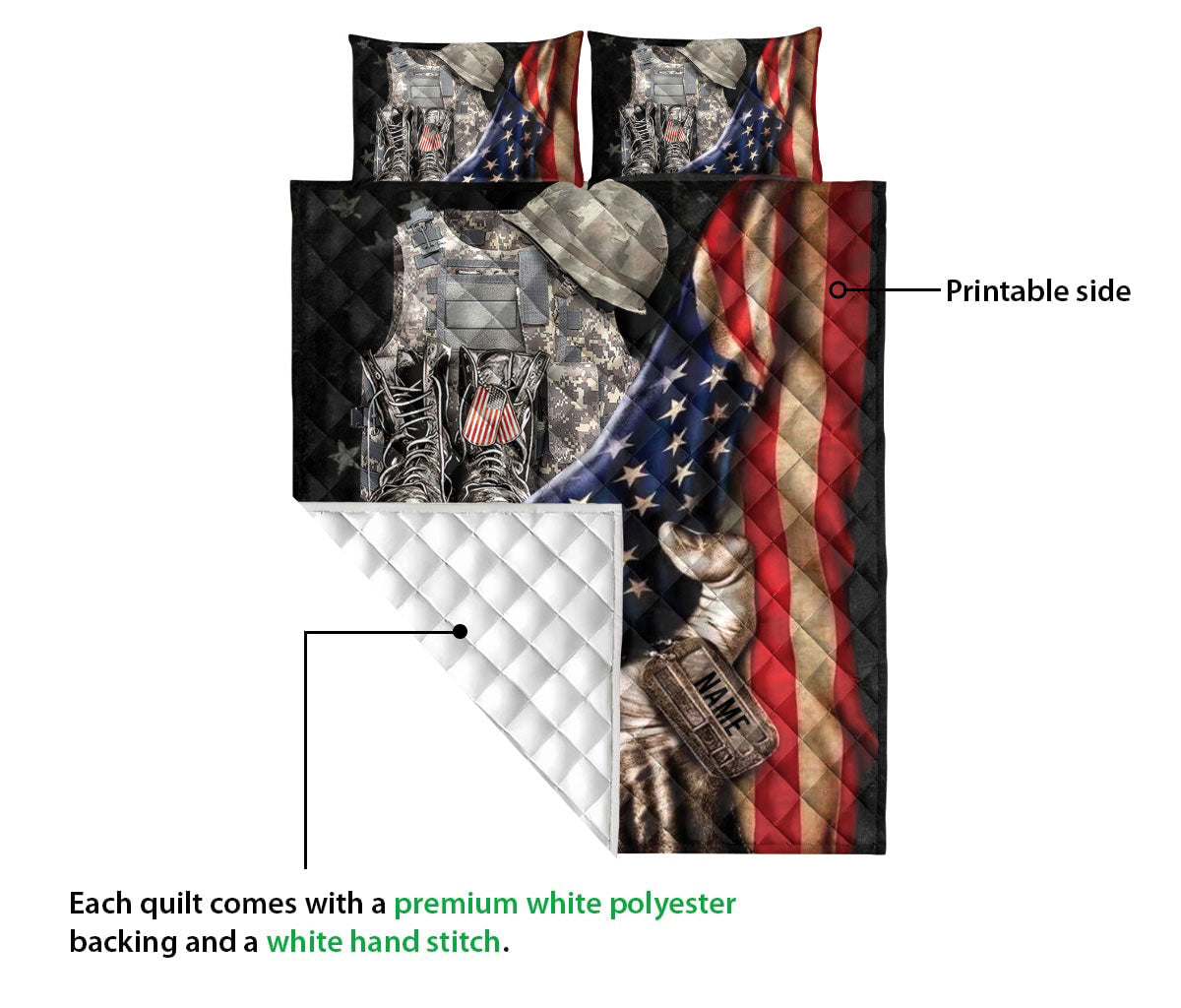 Personalized Veteran Quilt Set, Veteran Soldier Backpack Boost Military Army Quilt Blanket With Pillowcases, Custom Name Quilt Bedding Set