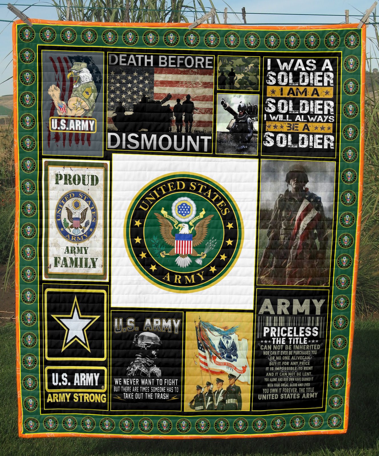 Proud Us Army Death Before Dismount | Veteran Quilt | Us Military Blanket Quilt | Gift For Veteran