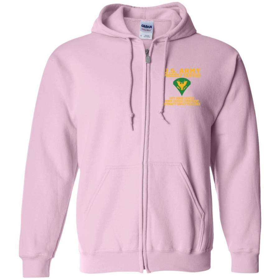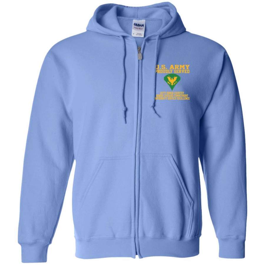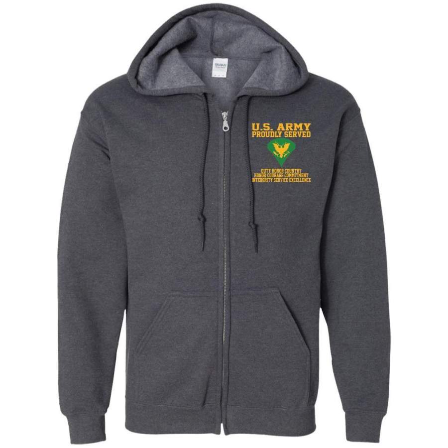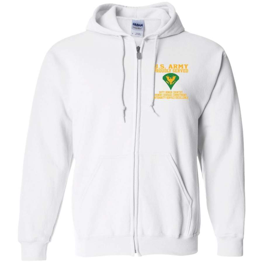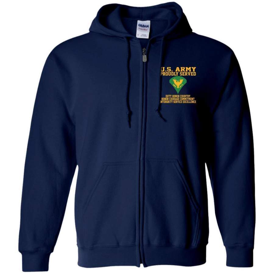 Proudly Served US Army E-4 Specialist E4 SPC Embroidered Zip Up Hooded Sweatshirt