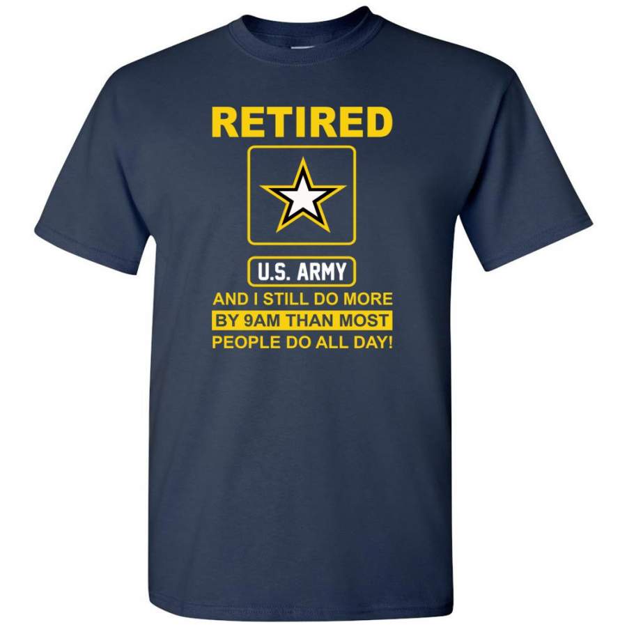 Retired us army and i still do more by 9am than most people do all day Tee shirt