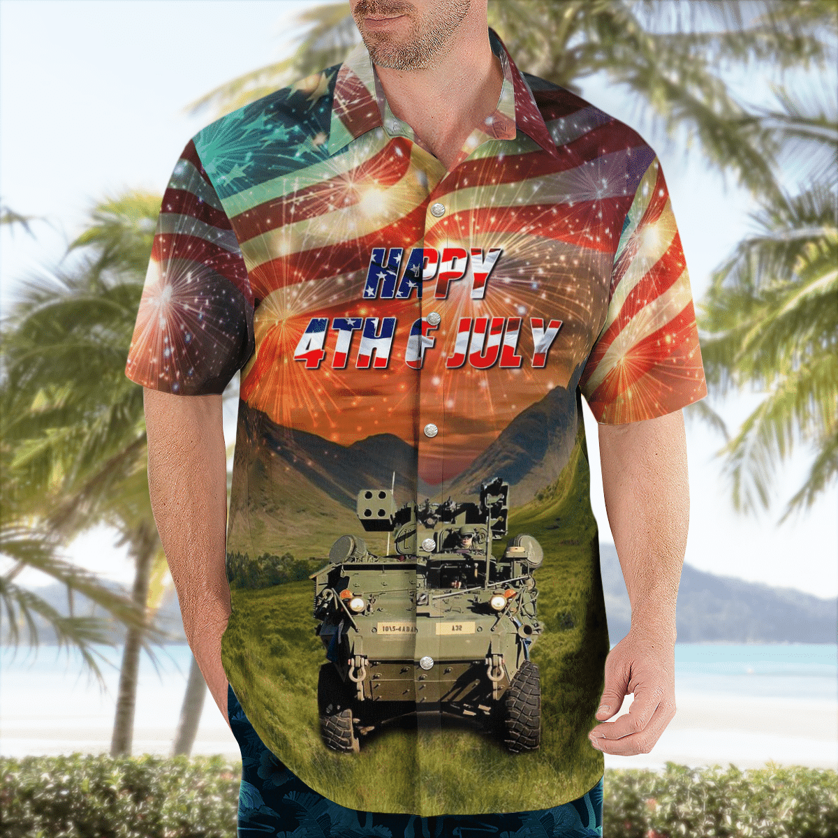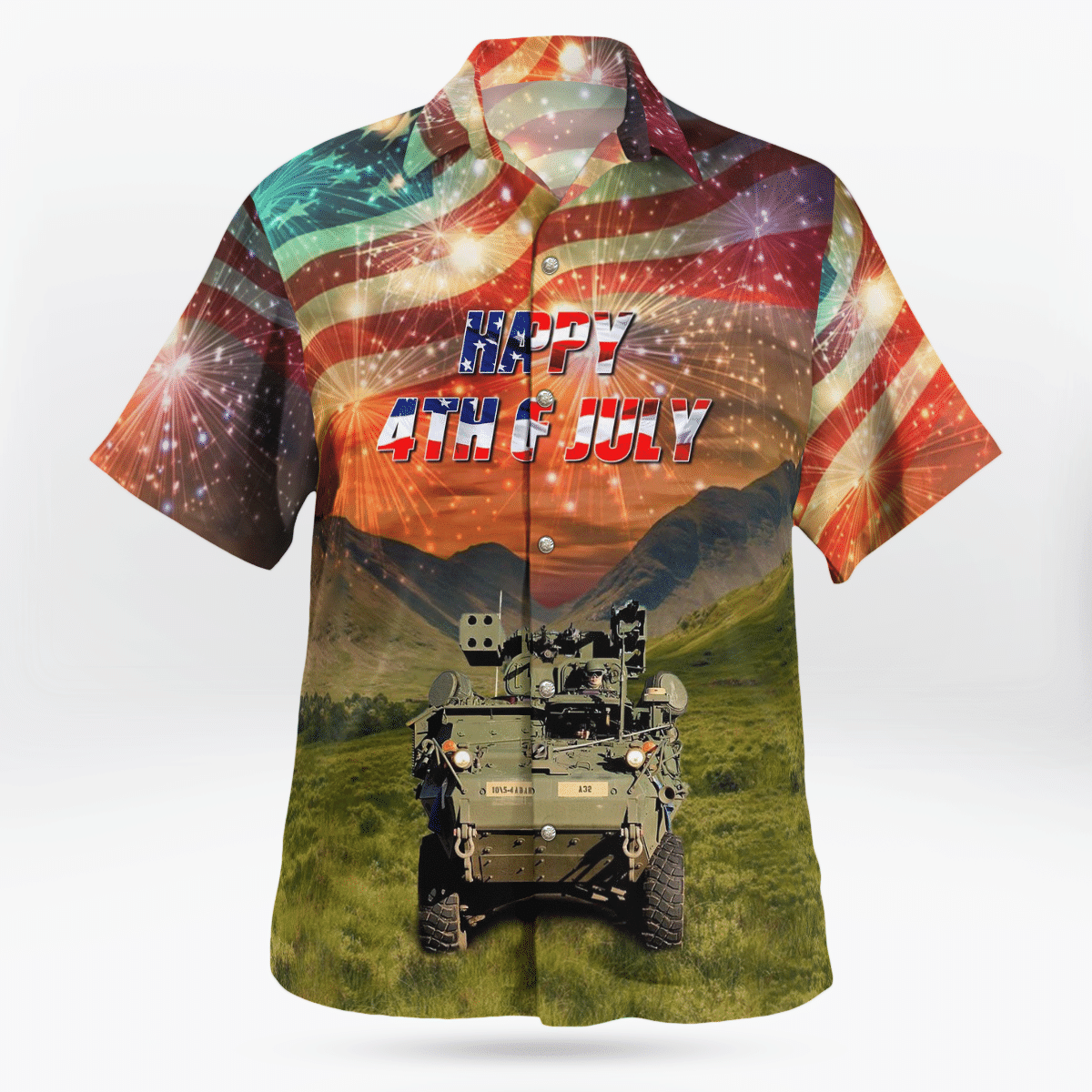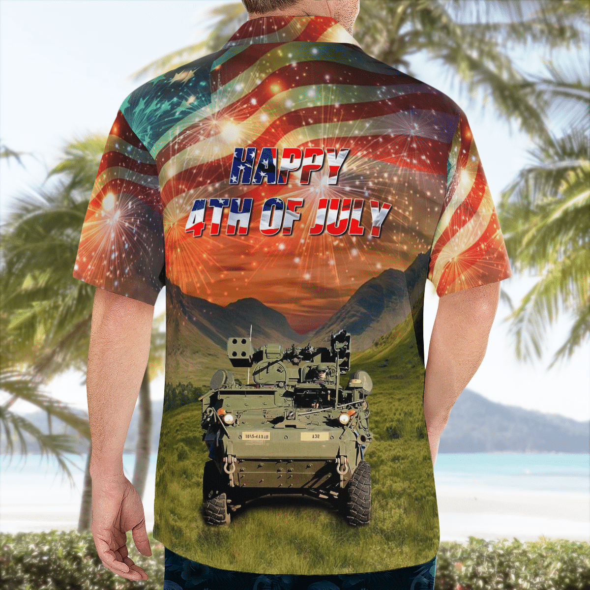 Trqd1205Bg04 Us Army Stryker Armored Personnel Carriers Of 5Th Battalion, 4Th Air Defense Artillery Regiment, 4Th Of July Hawaiian Shirt