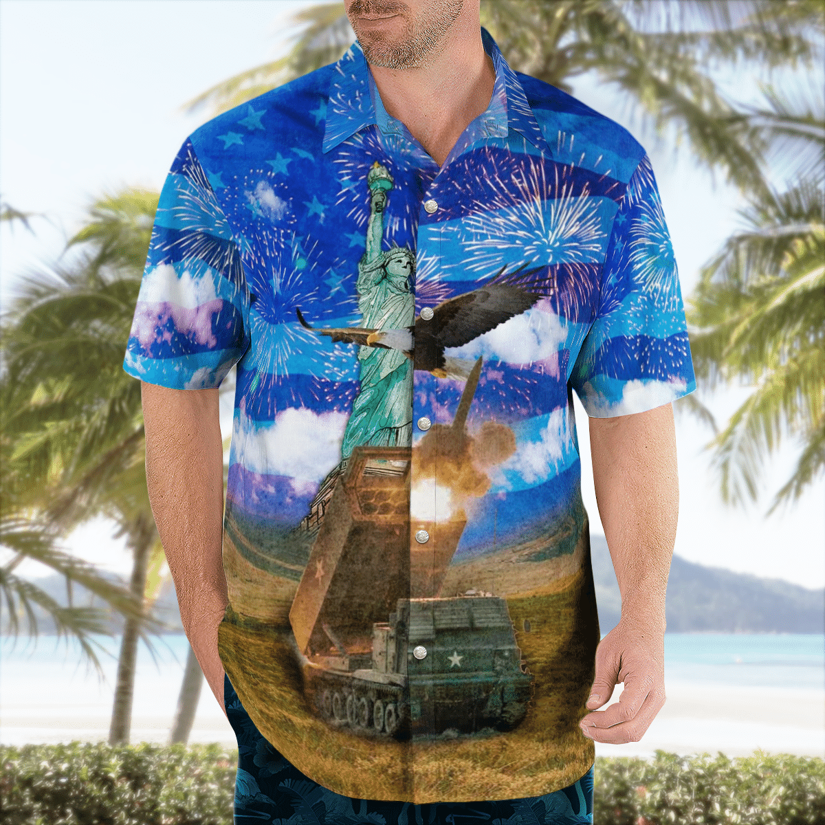 Trqd1205Bg06 Us Army M270 Multiple Launch Rocket System (M270 Mlrs), 4Th Of July Hawaiian Shirt