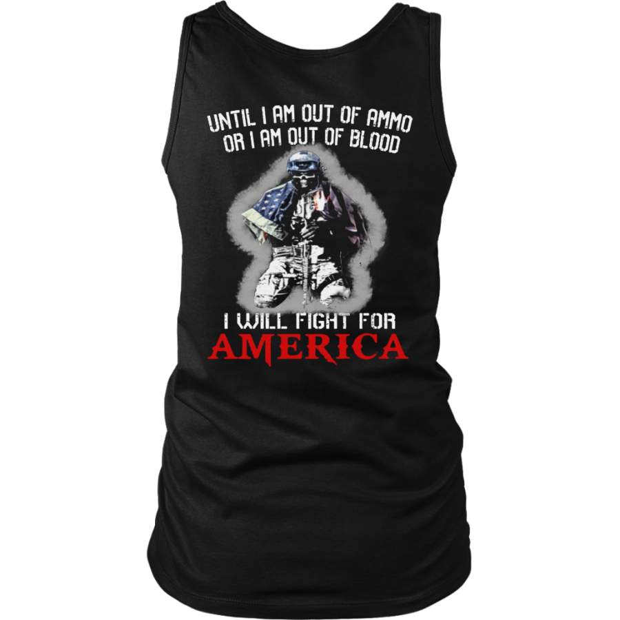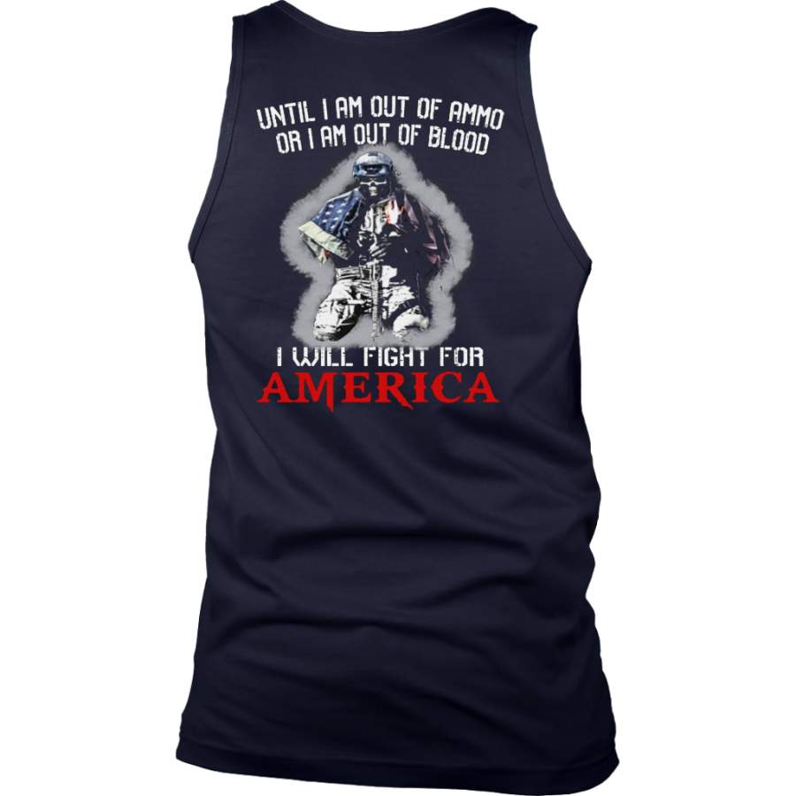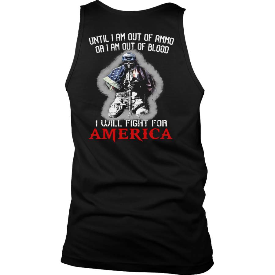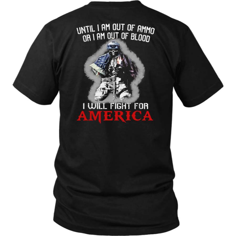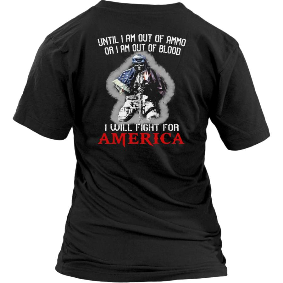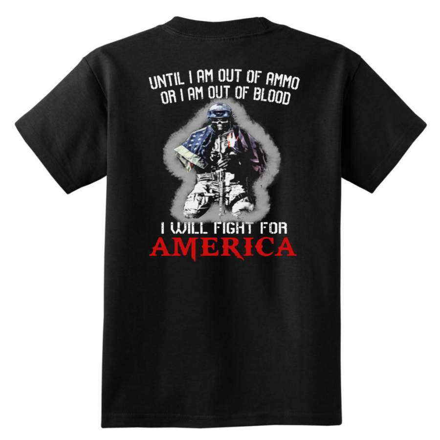 UNTIL I AM OUT OF AMMO OR I AM OUT OF BLOOD – I WILL FIGHT FOR AMERICA SHIRT US ARMY – VETERAN – SOLDIER