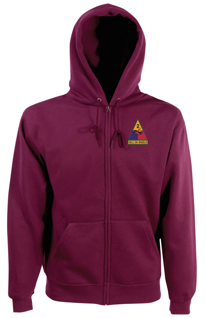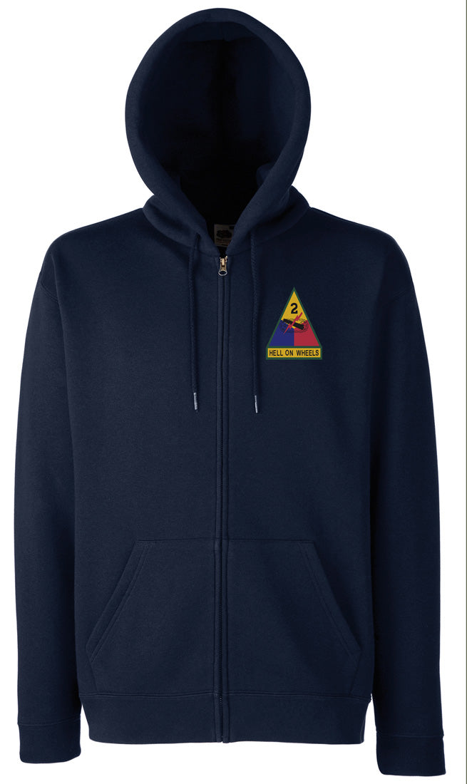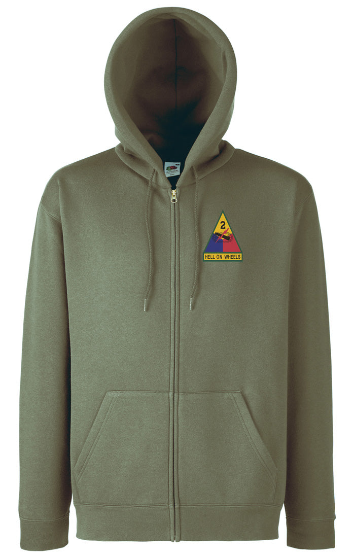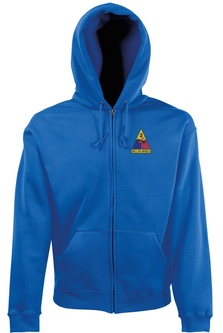 US Army 2nd Armoured Division Hell On Wheels – Zipped Hoodie Jacket – Embroidered Logo