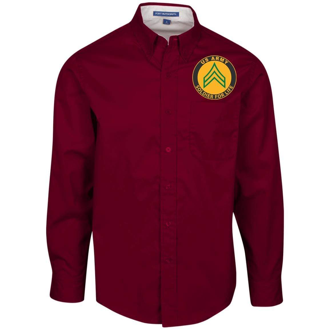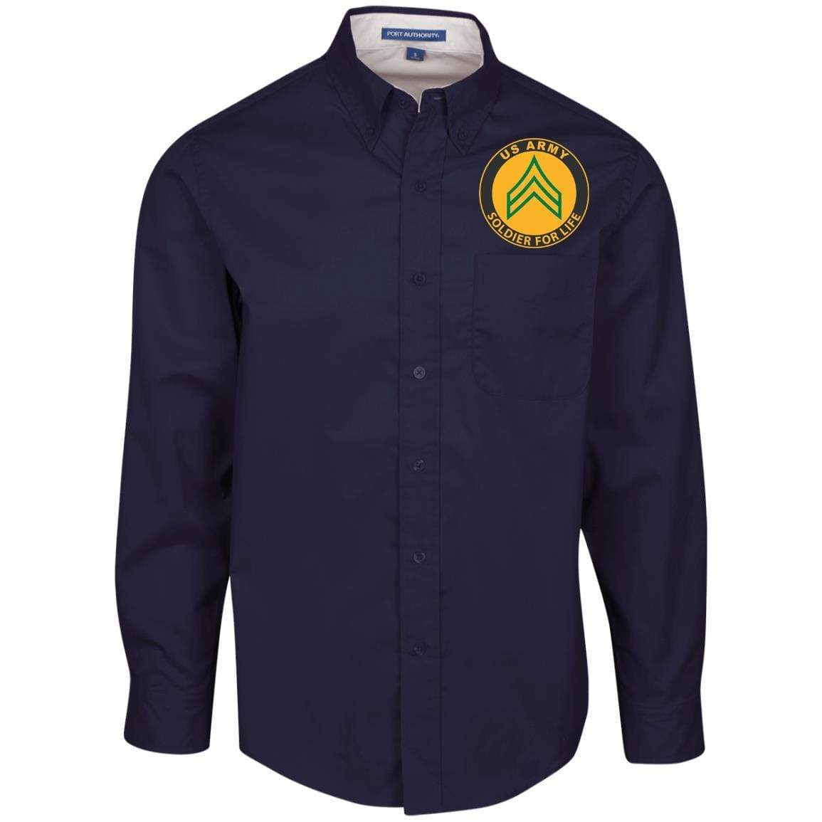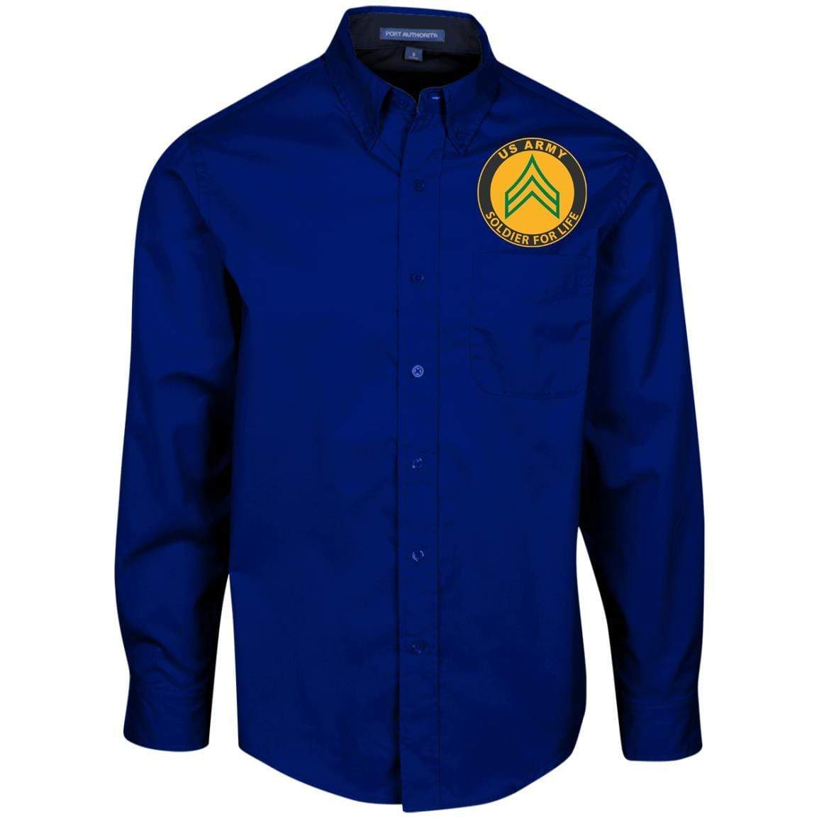 US Army E-4 Corporal E4 CPL Soldier For Life Embroidered Men’s LS Dress Shirt