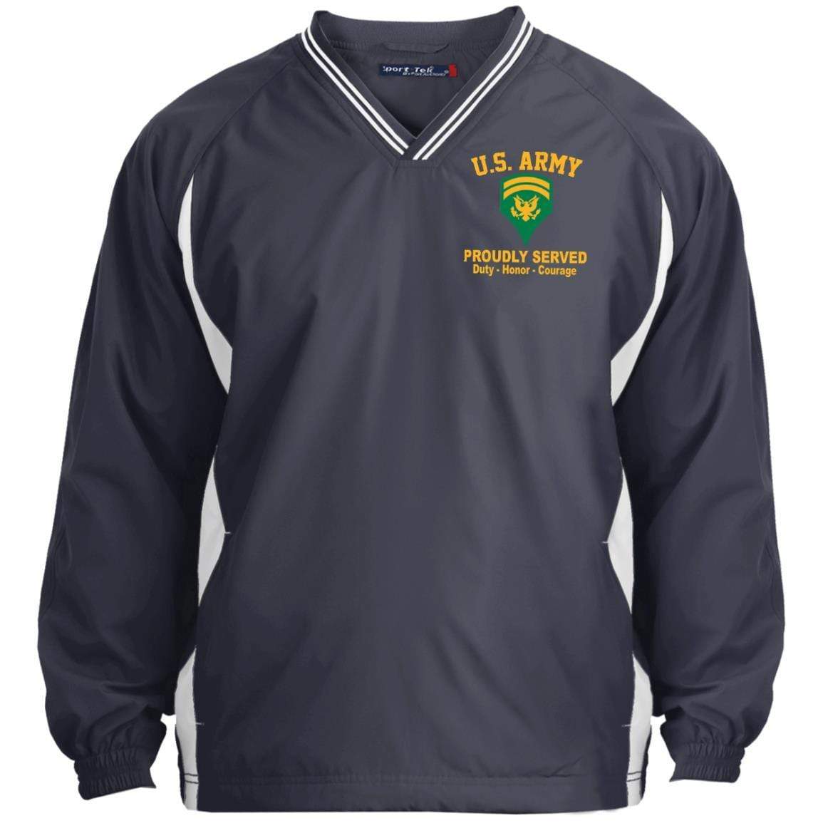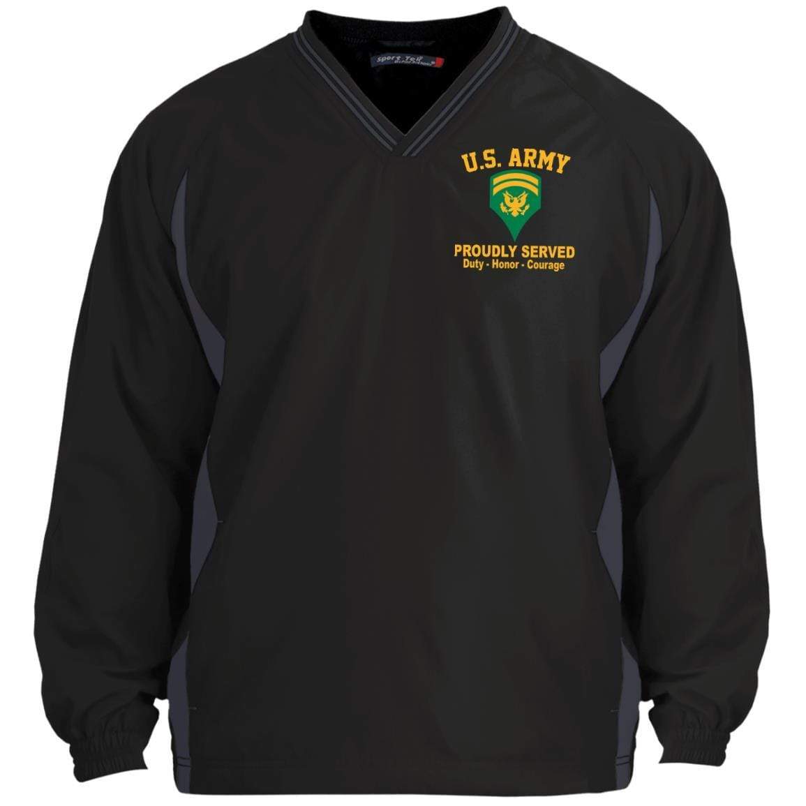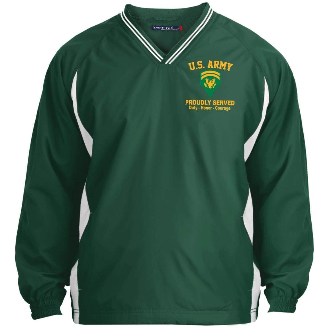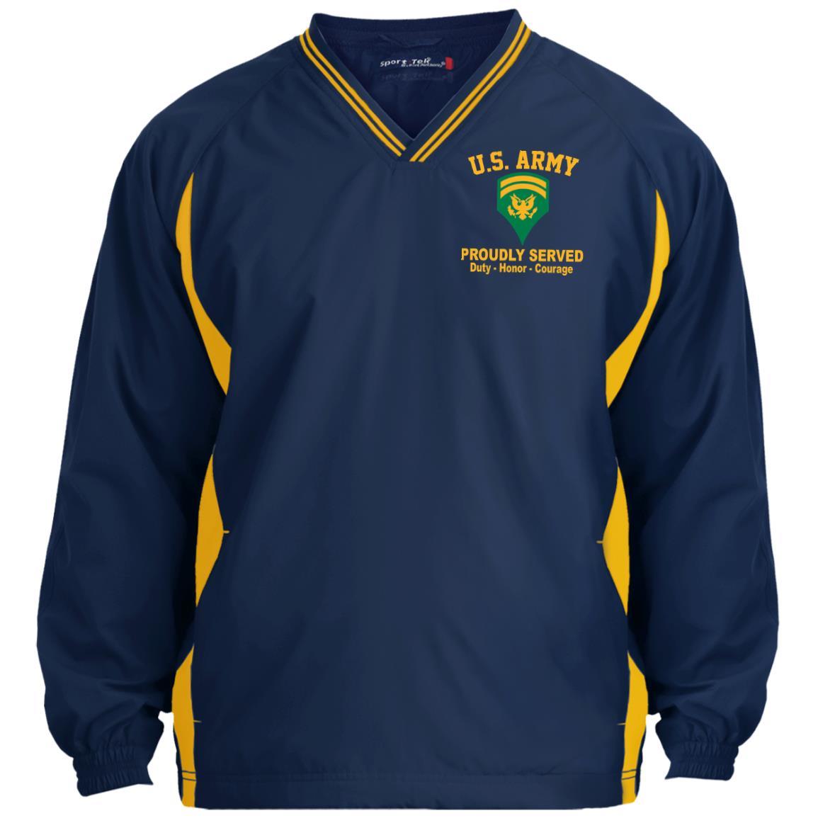 US Army E-6 SPC E6 Specialist Ranks Embroidered Sport-Tek Tipped V-Neck Windshirt