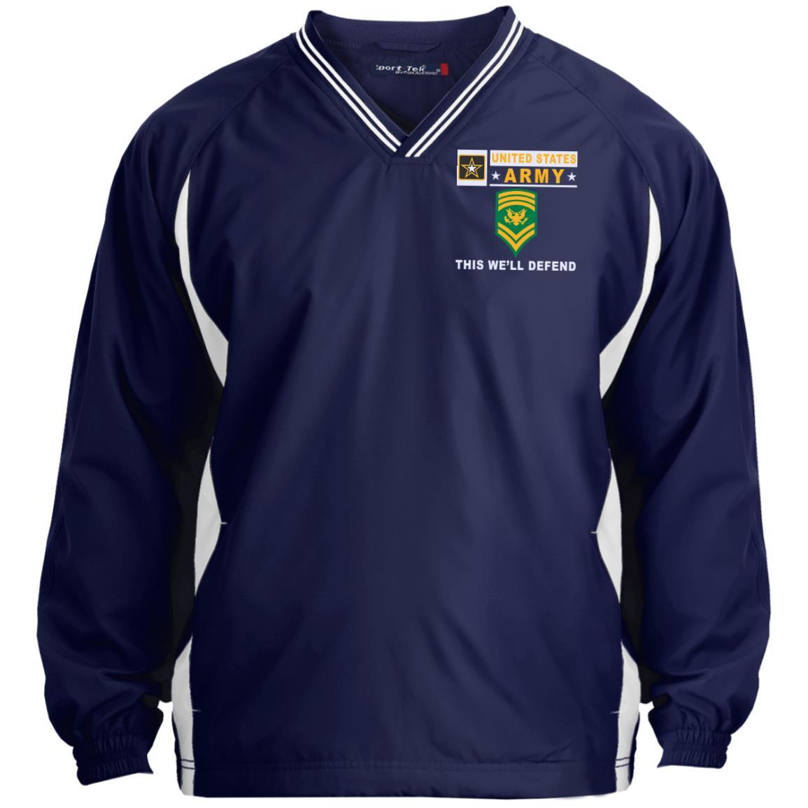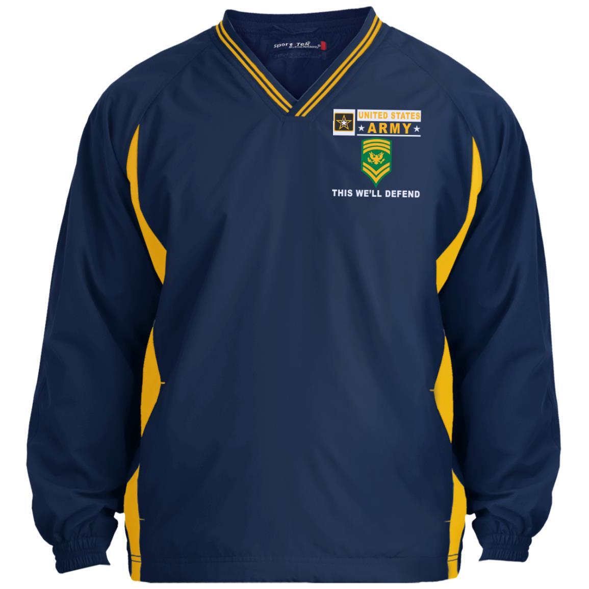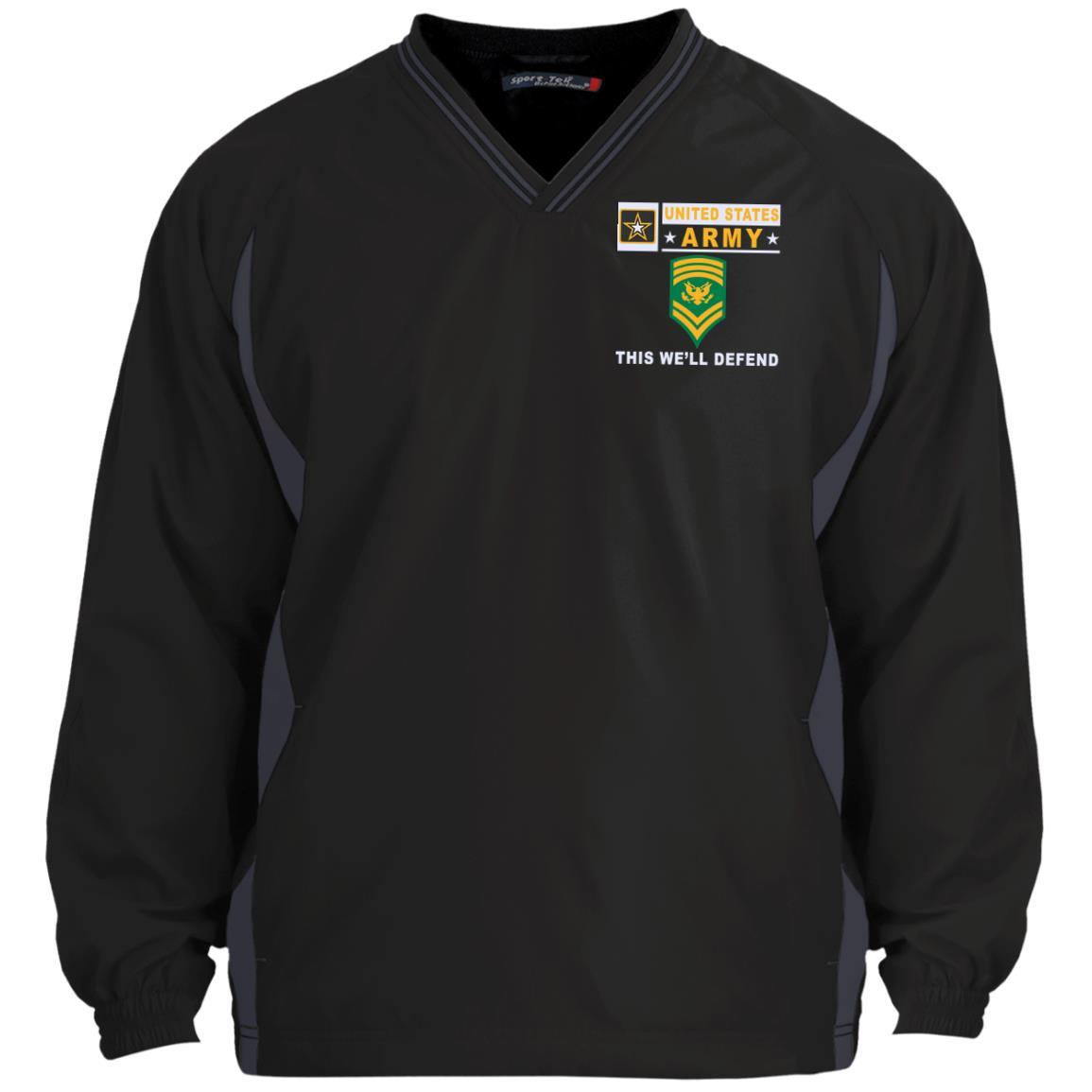 US Army E-9 SPC E9 SP9 Specialist 9- This we’ll defend Sport-Tek Tipped V-Neck Windshirt