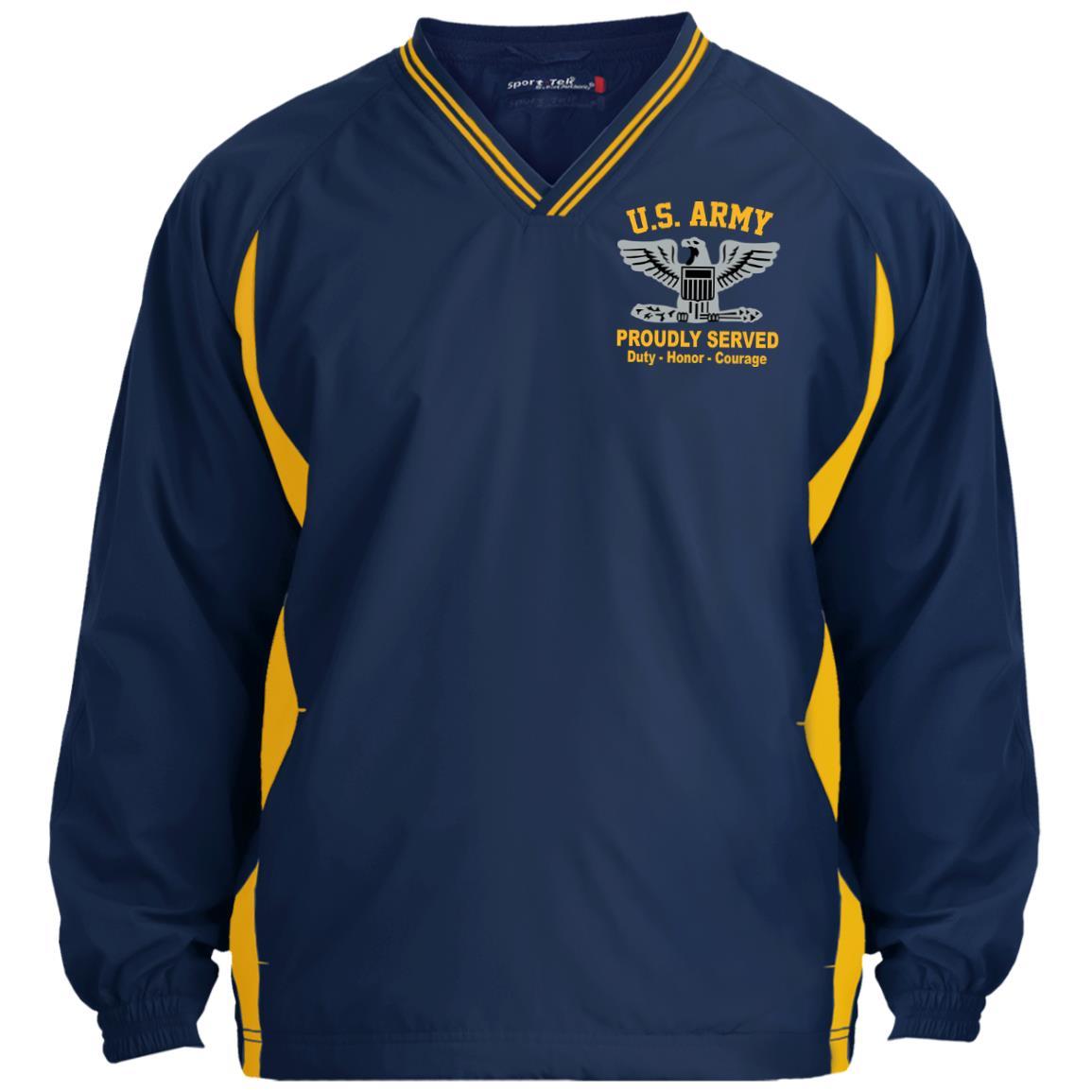 US Army O-6 Colonel O6 COL Field Officer Embroidered Sport-Tek Tipped V-Neck Windshirt