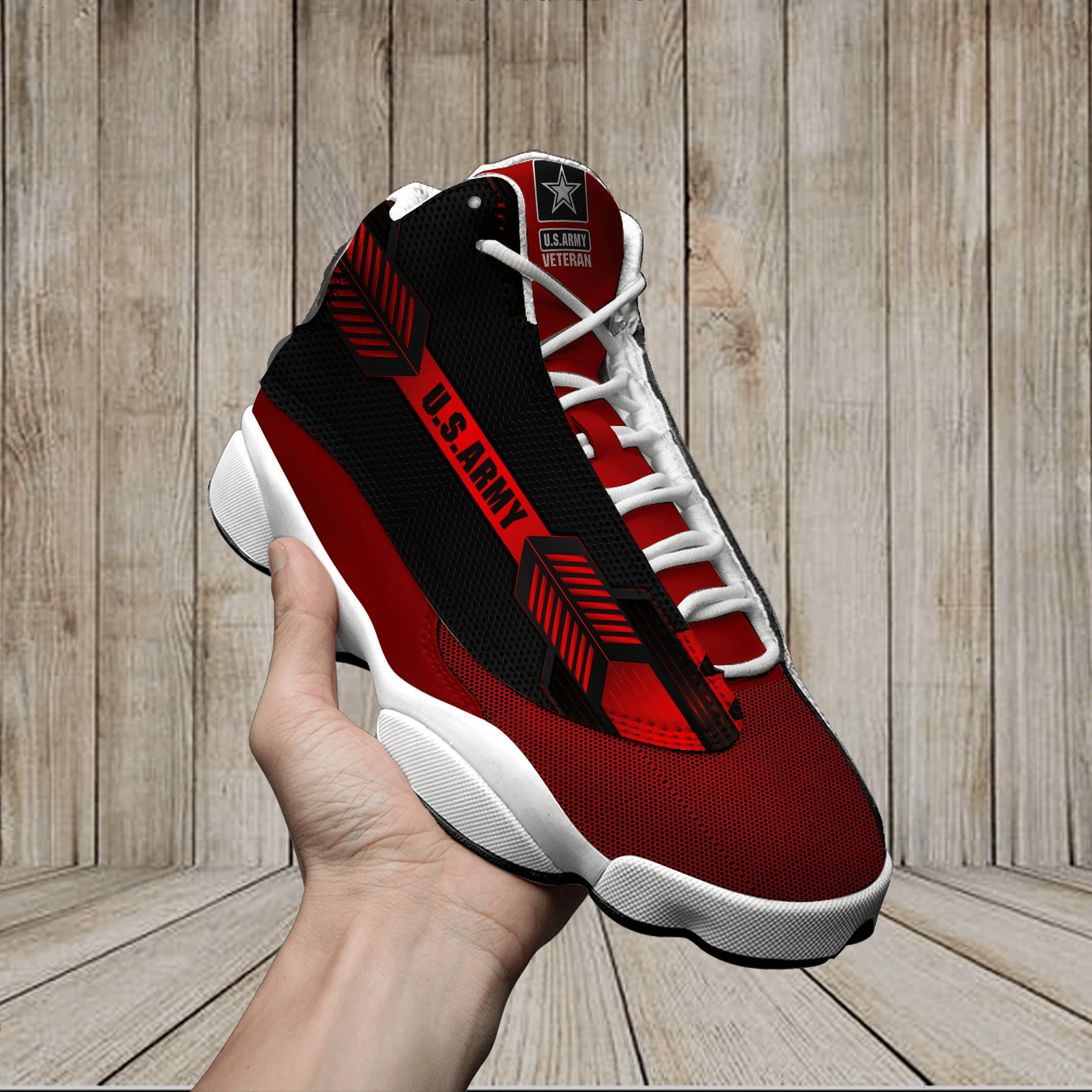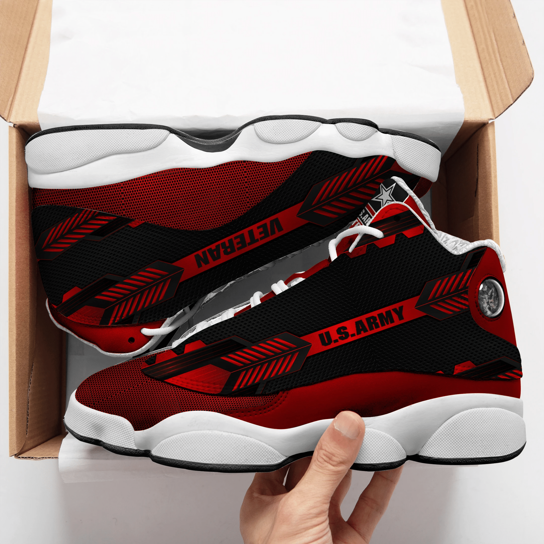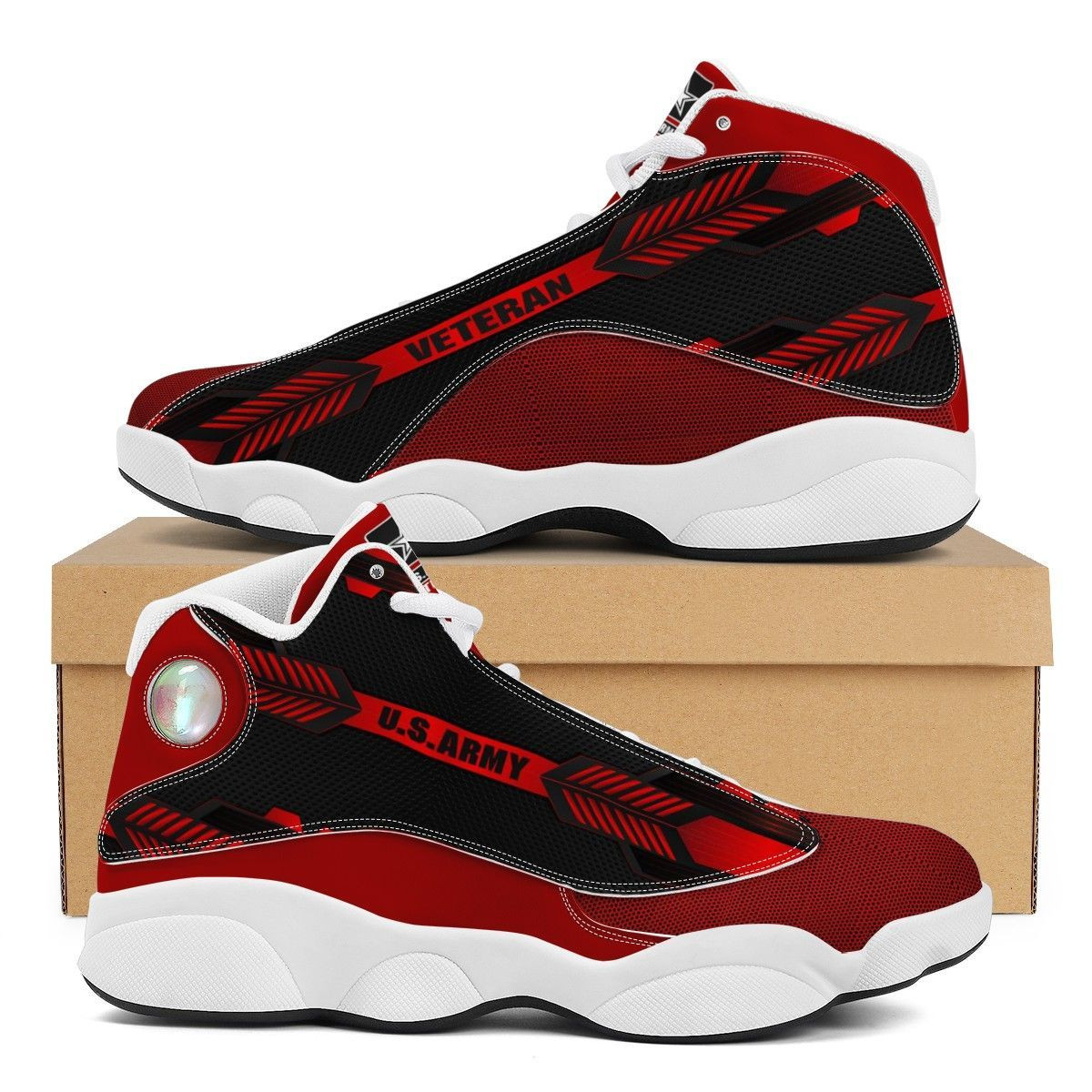 Us Army Red And Black Air Jordan 13 Printing Shoes Sneaker
