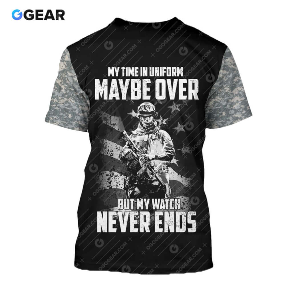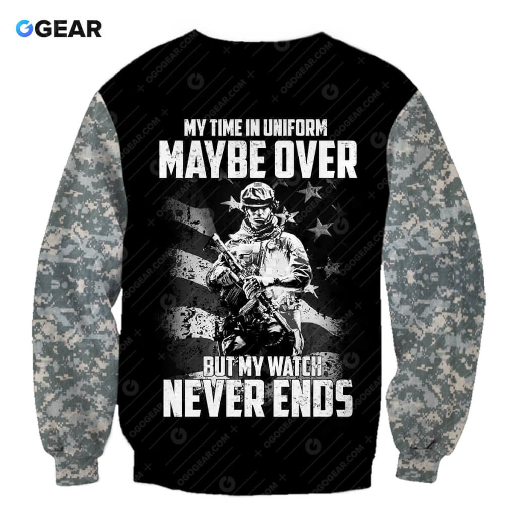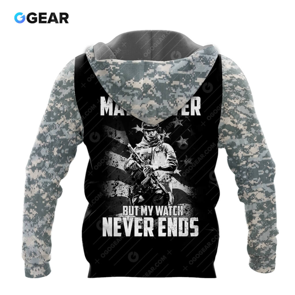 Veteran Army Watch Never Ends Hoodie Sweater Tshirt 3D Over Printed