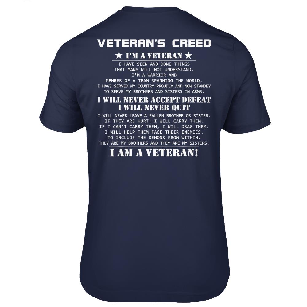 Veteran S Creed I M A Veteran Veterans Day Us Army Soldier T Shirts Print On Back
